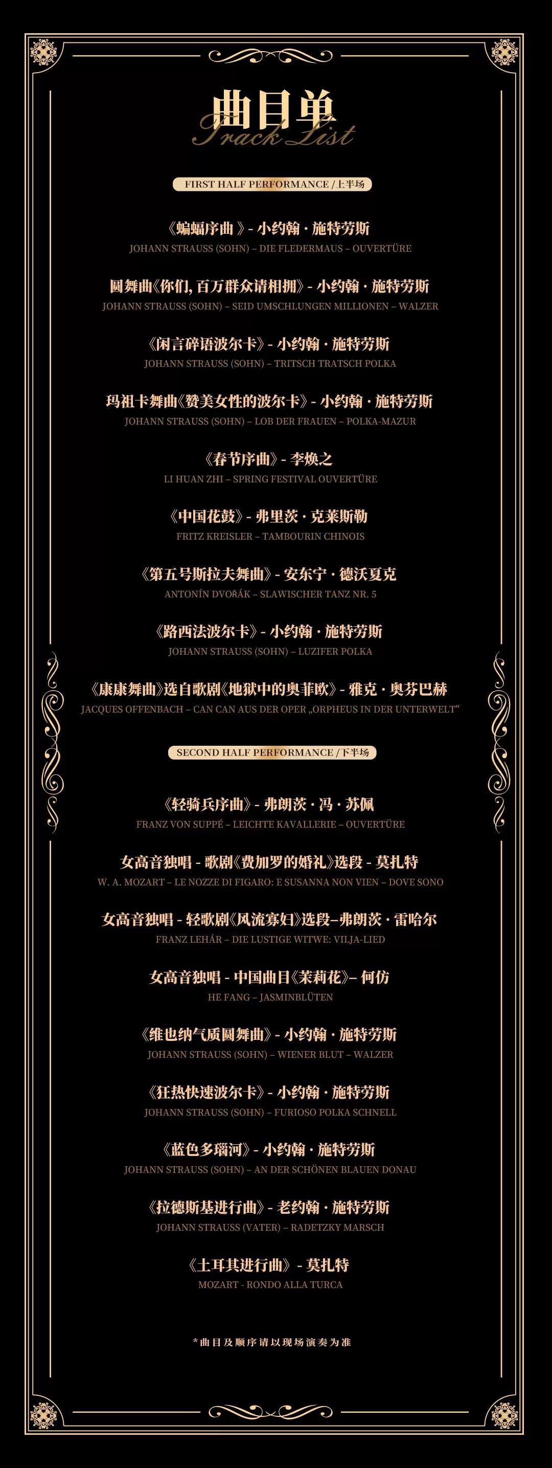 | 禁止携带物品 | 食品、饮料、相机、充电宝、打火机等 | 发票说明 | 如需开具发票,请在演出结束后一个月内联系客服并提供开票信息:票款发票由商家开具,平台服务费发票由票牛开具。 |