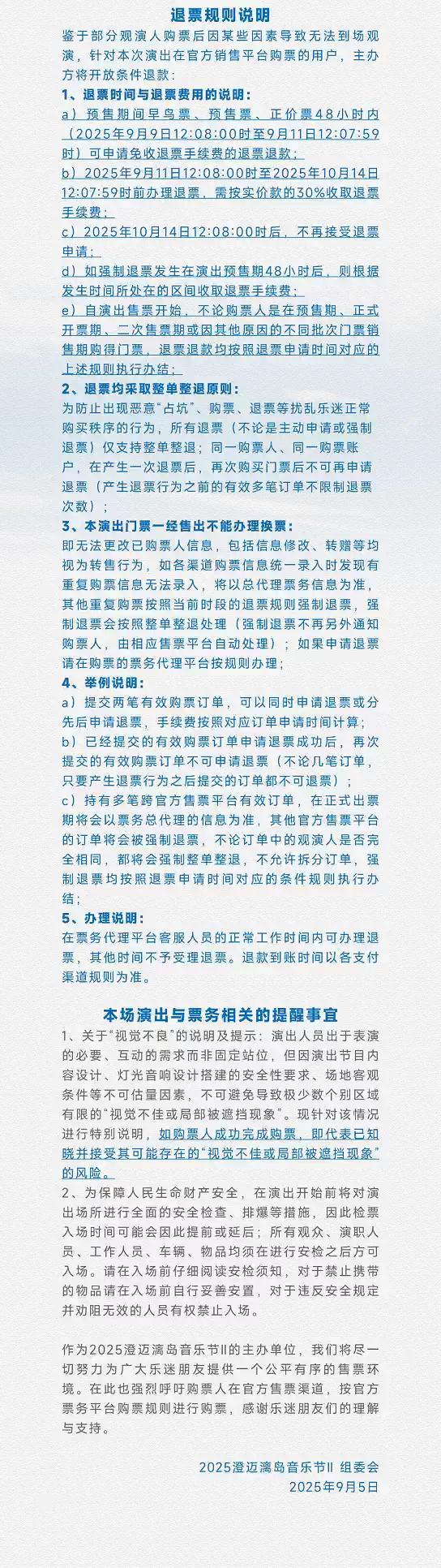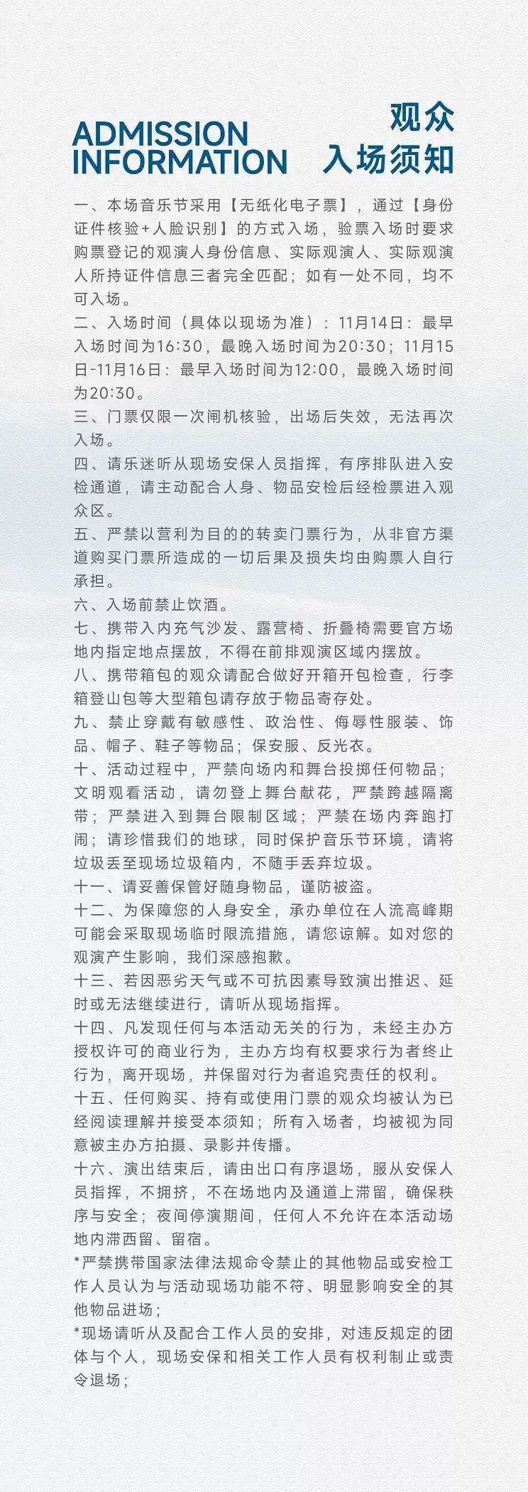 | 重要提示 | 演出现场气氛热烈,请您务必根据自身身体状况酌情是否购票参与观演,特别是患有心脏类疾病、急性心脑血管疾病、心肌炎、高血压等相关疾病的人群,请您务必遵照医嘱,结合病史及个人身体状况进行观演,观演期间请自行承担身体健康相关责任。 | 温馨提示 | 购买前请您提前规划好行程,做好相应准备,以免影响您的正常观演,感谢您的理解和配合。 若演出受不可抗力影响延期或取消,票牛将对演出票订单按照项目官方通知方案进行处理,其他因观演发生的费用需由您自行承担。 |