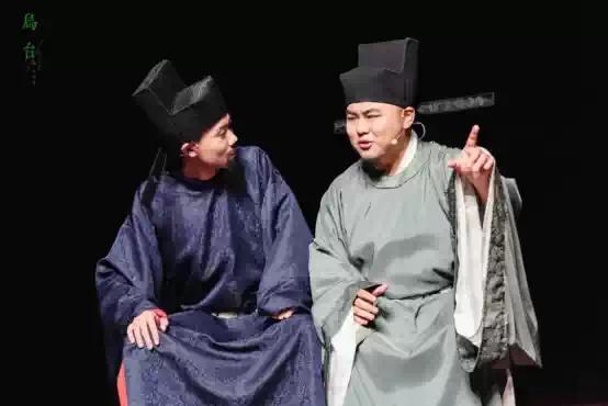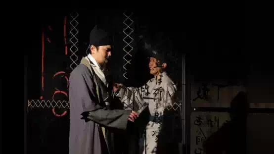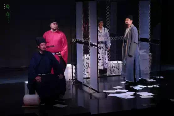 《乌台》采用了经典的“闭锁式”结构。采用“回顾式”的手法来阐述“乌台诗案”的来龙去脉。将四年前苏轼在御史台受审的残酷经历以回叙的手法巧妙融入苏轼和张怀民的酒后谈心。将“过去的戏剧”和“现在的戏剧”在同一舞台进行呈现,营造出独有的时空错觉。通过灯光和布景的配合,场景“跳切”自如,蒙太奇手法穿梭双时空,灵动而富有创意。给原本严肃厚重的历史故事,增加了一丝趣味和轻盈。