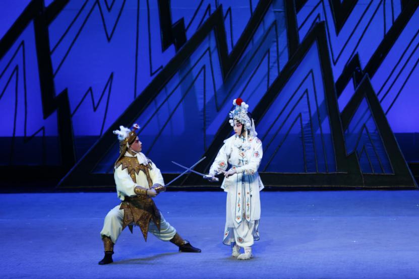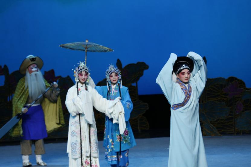 西演青年团创作演出的青春版《白蛇传》全剧共有十场,从《游湖》起,《毁塔》结尾,中间有《谛婚》《盗草》《水斗》《断桥》等场次,文武开打、唱做并重,英气逼人、耳目一新。饰演白素贞的演员几乎每场都会更换演员,《断桥》《水斗》《合钵》中的几位演员较为突出;饰演许仙的有两名青年演员,一名演员在《杨门女将》中饰演了采药老人,一名饰演了《雁荡山》中的孟海公,自身条件各有特点,各有所长;饰演青儿以及其他角色的演员一出场,也总会让人眼前一亮。特别是《水斗》《毁塔》中,个人的翻打跌扑、技巧运用,群场戏的密切配合,紧凑激烈,特别是西演青年团演员功底扎实,青春靓丽,更为剧目增色不少,可谓看点十足。