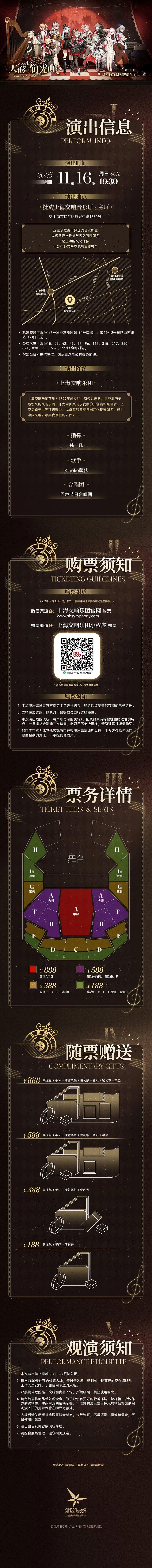 | 禁止携带物品 | 食品、饮料、相机、充电宝、打火机等 | 发票说明 | 如需开具发票,请在演出结束后一个月内联系客服并提供开票信息:票款发票由商家开具,平台服务费发票由票牛开具。 |