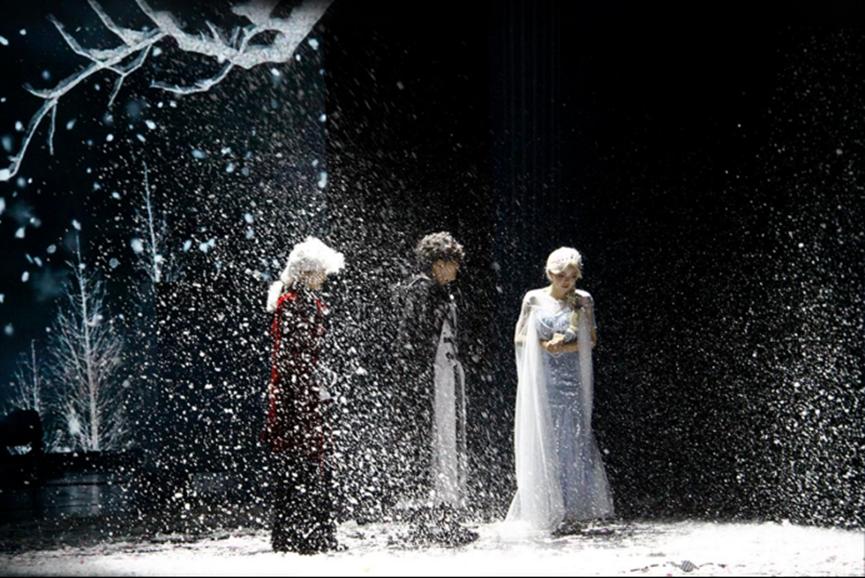 不再是简单的布景,而是暴风雪全景式舞台设计!核心舞台技术实现每秒200片雪花精准飘落,温度、风速、轨迹实时感应剧情起伏,连空气都充满戏剧张力!