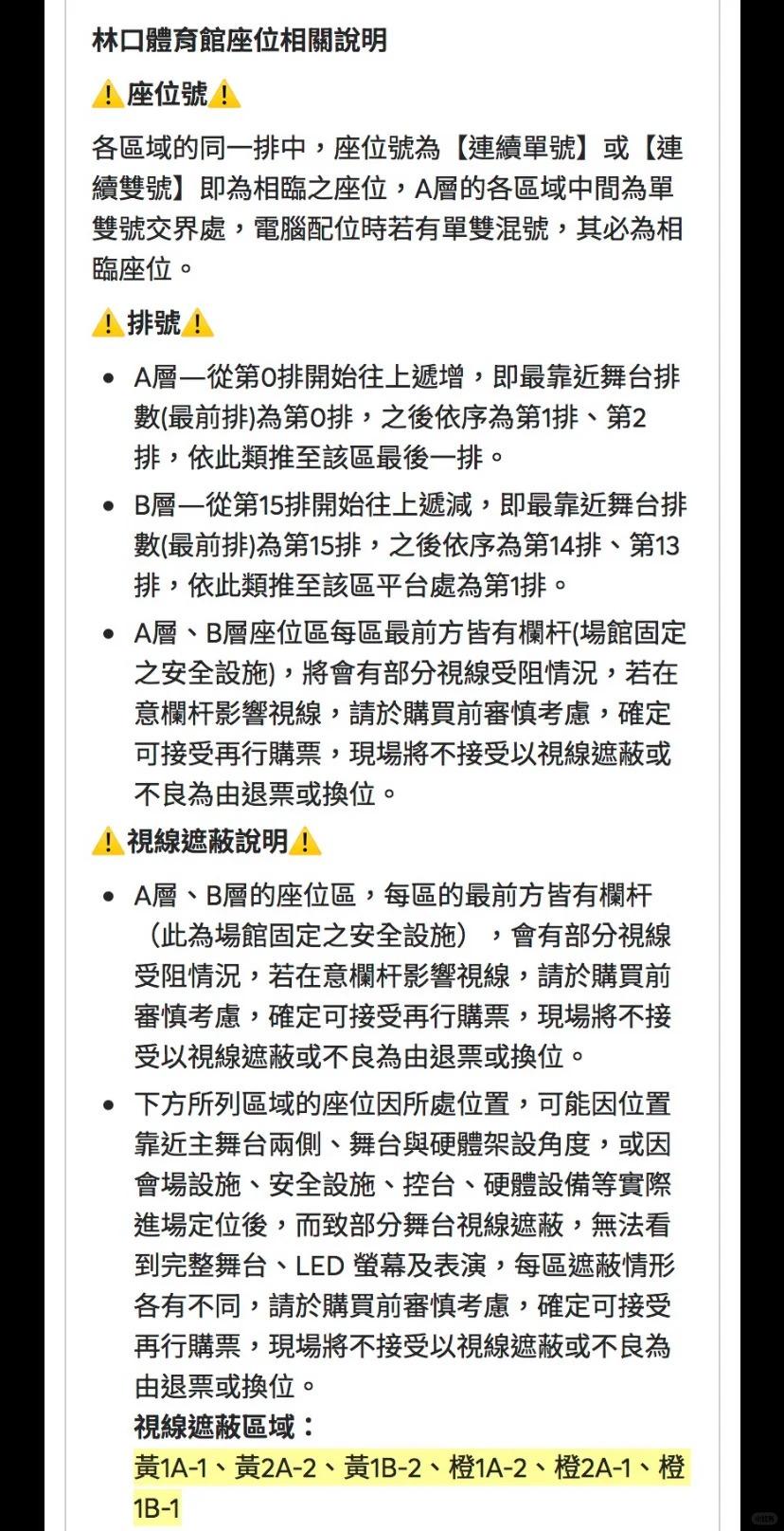 | 座位类型 | 请按门票对应座位,有序对号入座 | 儿童入场提示 | 1.2米以上凭票入场,1.2米以下谢绝入场 |