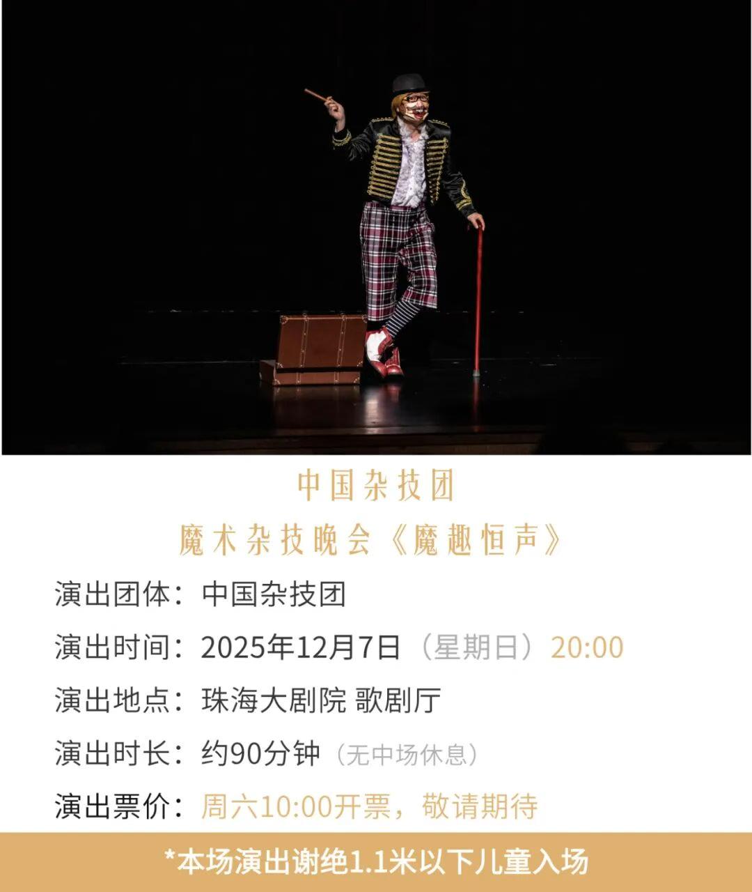 1、本场演出1.1米以下儿童谢绝入场,1.1米以上观众凭票入场。