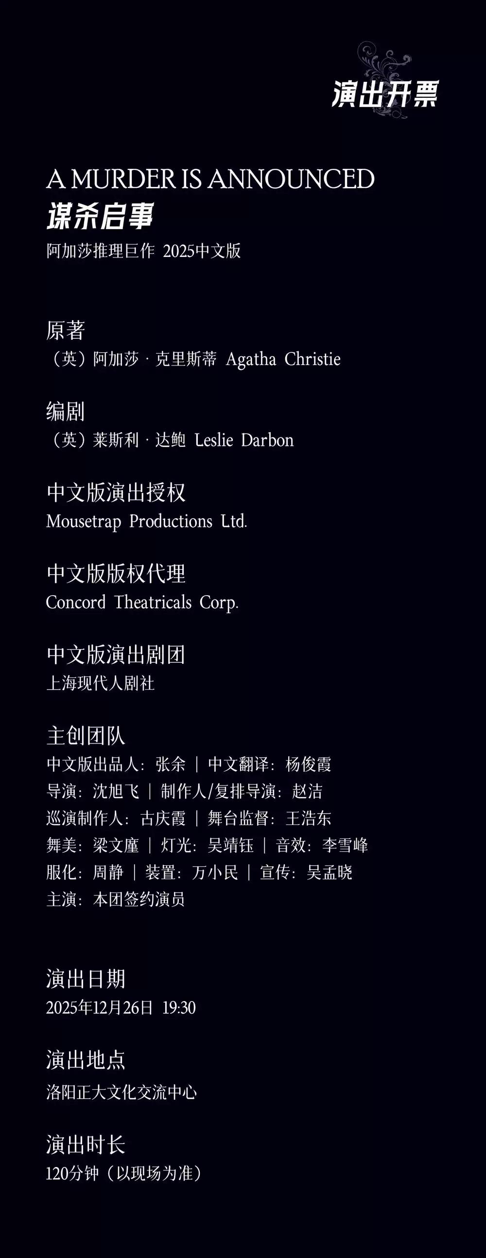 | 禁止携带物品 | 食品、饮料、相机、充电宝、打火机等 | 发票说明 | 如需开具发票,请在演出结束后一个月内联系客服并提供开票信息:票款发票由商家开具,平台服务费发票由票牛开具。 |