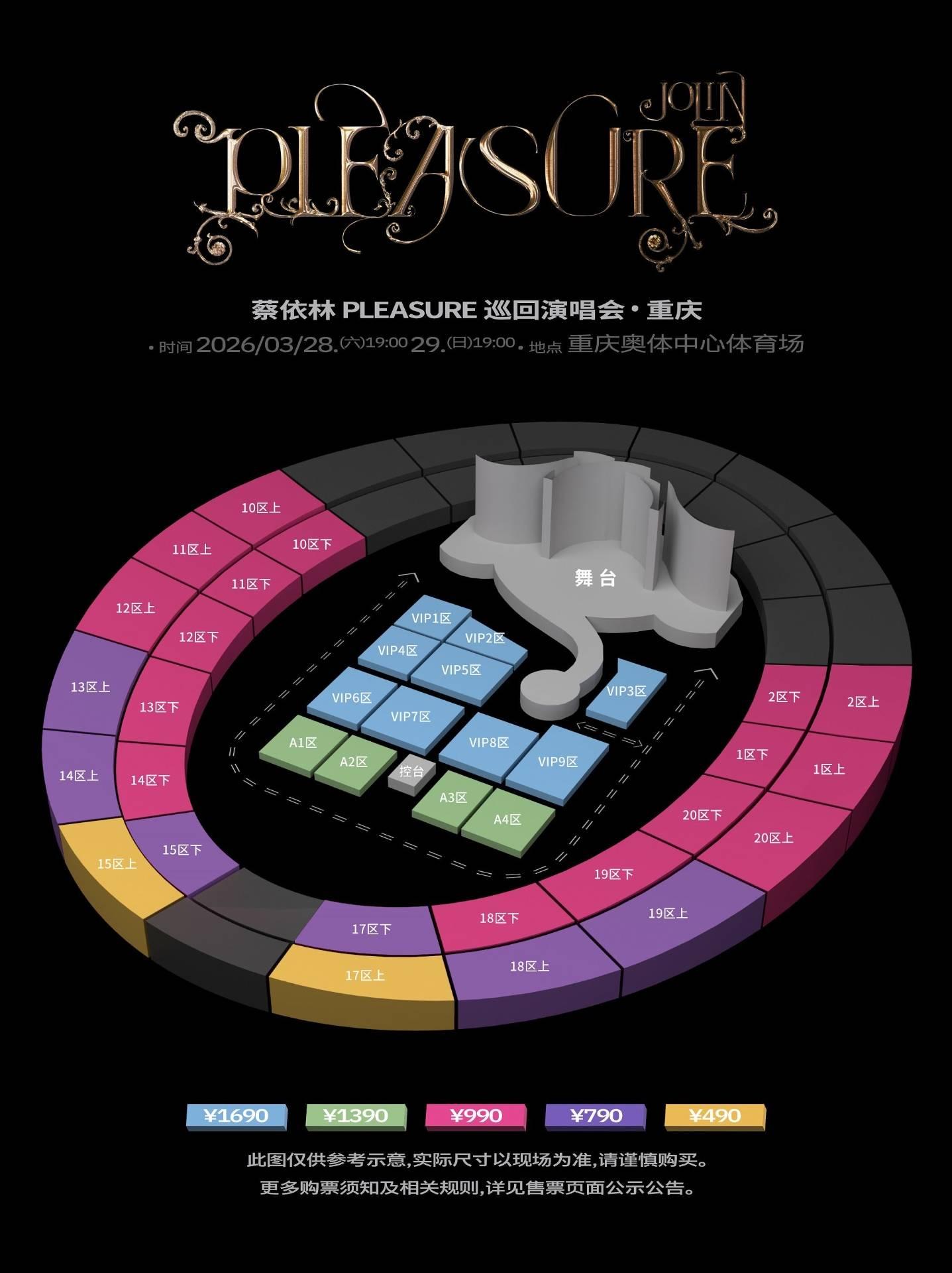 JOLIN 蔡依林 PLEASURE巡回演唱会 重磅登场,以《PLEASURE》专辑中探讨「欲望及愉悦」为核心概念延伸,从音乐、节目内容、舞台、特效、道具、视觉动画到前卫华丽造型等各项细节皆环环相扣主题,将整场演出构筑成一座庞大而立体的「愉悦宇宙」!当中透过五大故事章节串联,结合「觉醒之巅」、「欲望异域」、「感官乐土」、「真相之书」、「缤纷梦境」、「愉悦乐园」六大奇幻华丽场景相互映衬,再佐以JOLIN出道以来逾30首重新改编的金曲在节目呈现上一气呵成;此外,来自江苏省的数名特技演员耗时数月联合打造象征着力量、智慧、蜕变与勇敢探索的巨蟒装置,这条巡游的巨蟒不仅体现了JOLIN对于制作的精益求精,更展现了强大的东方生命力。通过特技演员的精湛技艺,巨蟒在场内巡游实现了「蛇形似水,蜿蜒不息」的东方韧性。内搭配重金营建的三座沉浸互动式「人间乐园」舞台,以及媲美国际巡演的顶规视觉特效,再加上七套前卫时尚造型与36名来自世界各地的专业舞者,不仅完整呈现磅礡气势,更一举打造出独特沉浸式感官飨宴,让这场斥2亿人民币巨资的魔幻大秀宛如一部结合时尚、艺术、音乐的史诗级音乐奇幻钜作,由JOLIN带领观众一同踏上自我觉醒的感官冒险,找回属于自己的终极乐园!