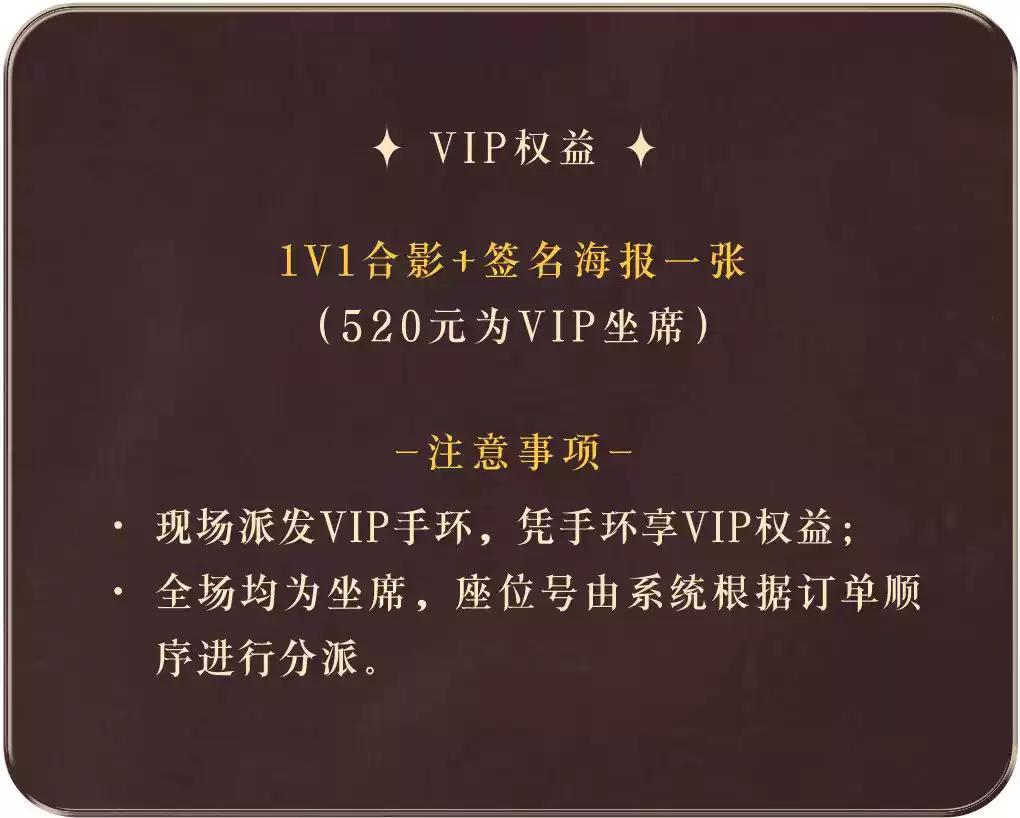 | 服务费说明 | 为了给您提供便利的在线购票服务,票牛为此投入大量的平台技术支持、运营维护支持,并联合平台入驻商家、第三方在线支付服务商、第三方合作商等合作方为您提供服务,基于前述平台成本及合作方服务费用,票牛向您收取不超过票款5%的平台服务费(最高不超过400元)。 票牛收取的平台服务费,主要可能包括如下内容:1.票牛的线上平台和软件系统开发维护成本。2.支付宝、微信等第三方支付服务商收取的支付手续费用。3.物流公司收取的票品寄送费用(如纸质票)。4.客户服务成本以及短信、电话等通道费用。5.为用户提供购票保障服务对应的运营与管理成本。6.其它为完成用户订单必须的相关服务成本、人员成本等。 | 座位类型 | 请按门票对应座位,有序对号入座 |