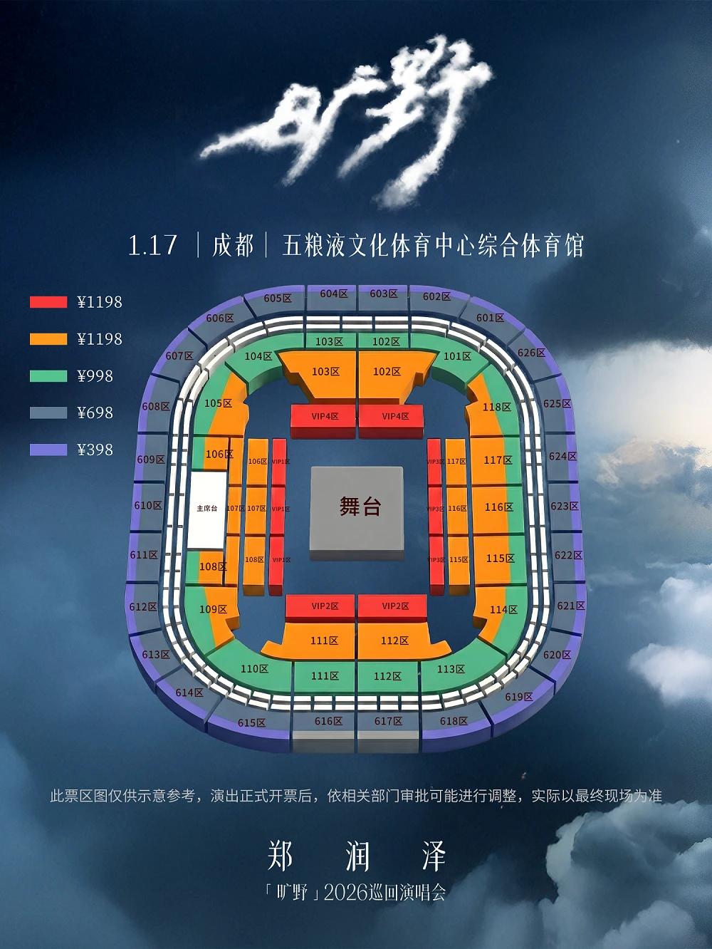 | 服务费说明 | 为了给您提供便利的在线购票服务,票牛为此投入大量的平台技术支持、运营维护支持,并联合平台入驻商家、第三方在线支付服务商、第三方合作商等合作方为您提供服务,基于前述平台成本及合作方服务费用,票牛向您收取不超过票款5%的平台服务费(最高不超过400元)。 票牛收取的平台服务费,主要可能包括如下内容:1.票牛的线上平台和软件系统开发维护成本。2.支付宝、微信等第三方支付服务商收取的支付手续费用。3.物流公司收取的票品寄送费用(如纸质票)。4.客户服务成本以及短信、电话等通道费用。5.为用户提供购票保障服务对应的运营与管理成本。6.其它为完成用户订单必须的相关服务成本、人员成本等。 | 座位类型 | 请按门票对应座位,有序对号入座 |