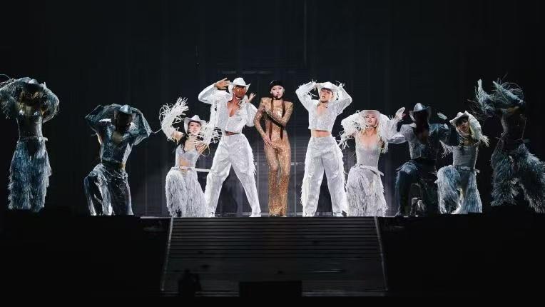 7月5日,上海首站率先点燃激情,万人场馆化作璀璨“昕蓝海”。当《淘里淘气》《Reality》《风雨同昕》等热门歌曲响起,全场齐声合唱的热潮瞬间席卷夜空,为盛夏注入第一缕炽热能量。舞台设计以贵州非遗银饰的造型融合民间反排木鼓舞,整场演出加入了Talkbox、将Old school气氛拉满, 《Baby I know》与特邀嘉宾新演绎, 将Popping重现舞台.