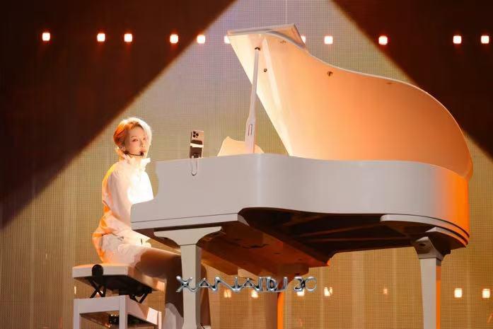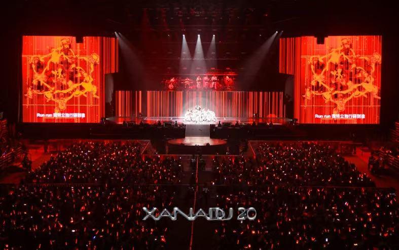10月18日,广州站. 开场以锦鸡舞拉开恢弘气势,锦鸡寓意着吉祥. 演绎新电音乐器电吹管,随后响起的粤语金曲瞬间唤醒城市记忆,将地域情怀与音乐热爱深度联结,更将广州记忆再次赴约,与《想见你想见你想见你》《练习曲》原作者嘉宾现场对唱,完成当年约定!安可环节更加入钢琴弹唱《YES!OK!》将五年前每一个经典舞台再度在同一时间全部链接回忆,穿越时空,心愿都在逐一实现,仙那度不光是XIN的仙境,更记录着她追梦路程上的每一步!