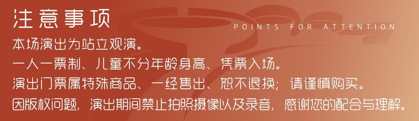 | 重要提示 | 演出现场气氛热烈,请您务必根据自身身体状况酌情是否购票参与观演,特别是患有心脏类疾病、急性心脑血管疾病、心肌炎、高血压等相关疾病的人群,请您务必遵照医嘱,结合病史及个人身体状况进行观演,观演期间请自行承担身体健康相关责任。 | 温馨提示 | 购买前请您提前规划好行程,做好相应准备,以免影响您的正常观演,感谢您的理解和配合。 若演出受不可抗力影响延期或取消,票牛将对演出票订单按照项目官方通知方案进行处理,其他因观演发生的费用需由您自行承担。 |