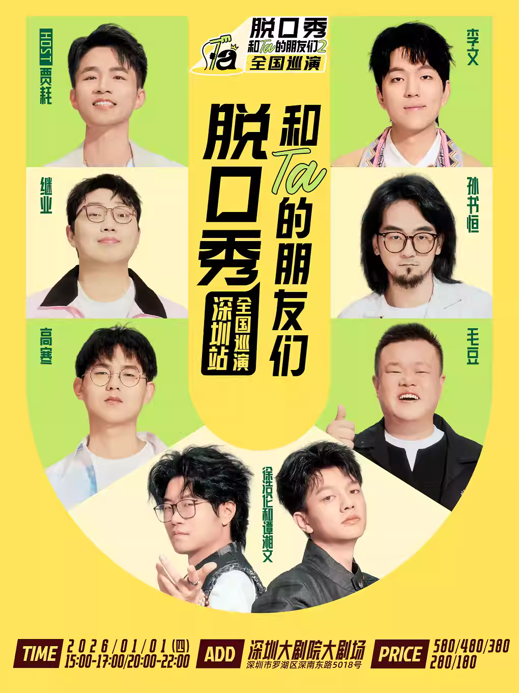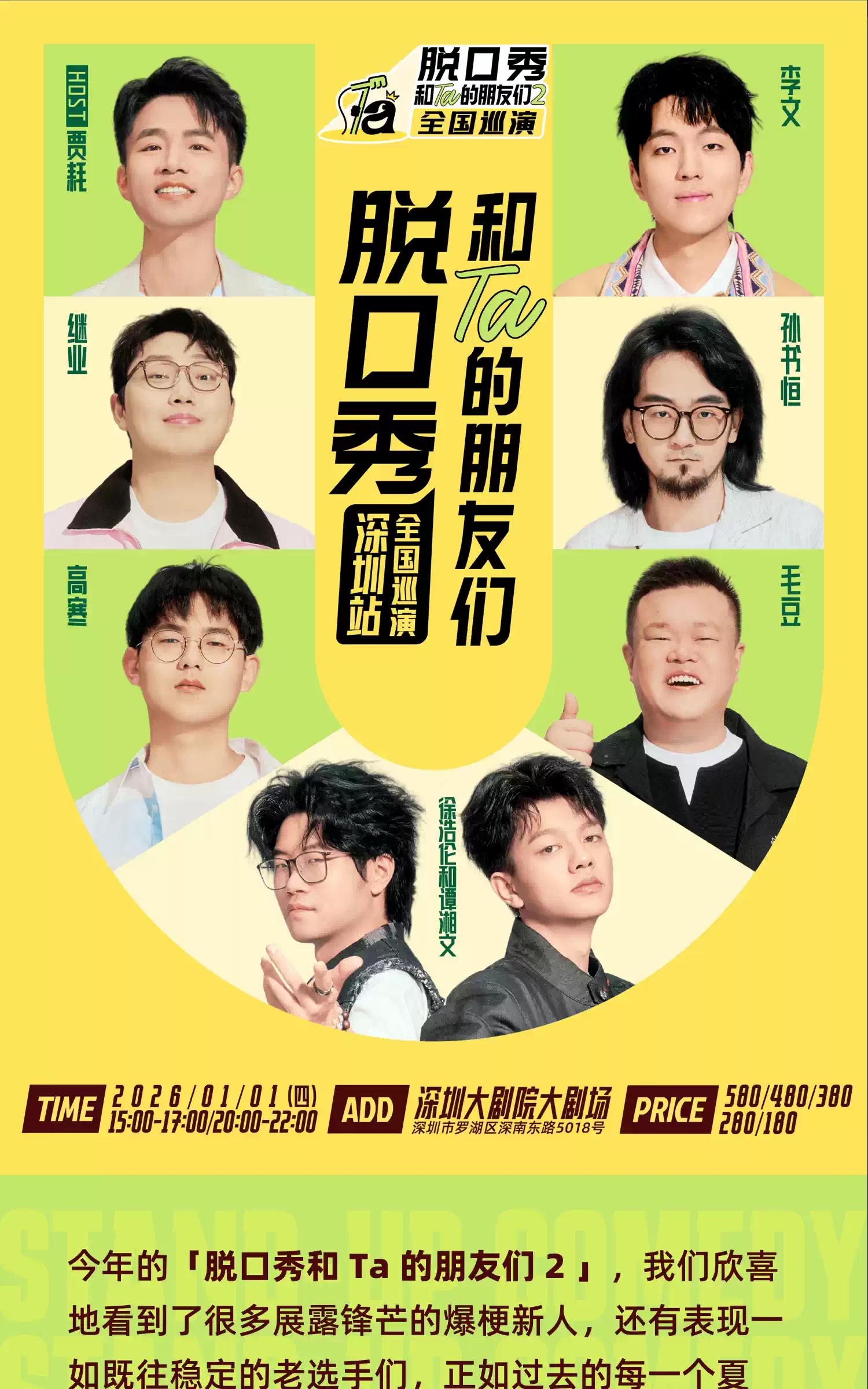 [深圳]《脱口秀和Ta的朋友们2》·深圳|徐浩伦和谭湘文、毛豆、高寒、孙书恒、继业、李文、贾耗