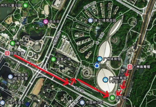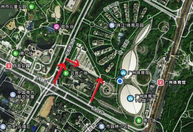 自驾车:导航至云胜广场停车场、凯德广场云尚地下停车场、宏鼎云景汇地下停车场、广州市儿童公园停车场、5号停机坪地面停车场等。