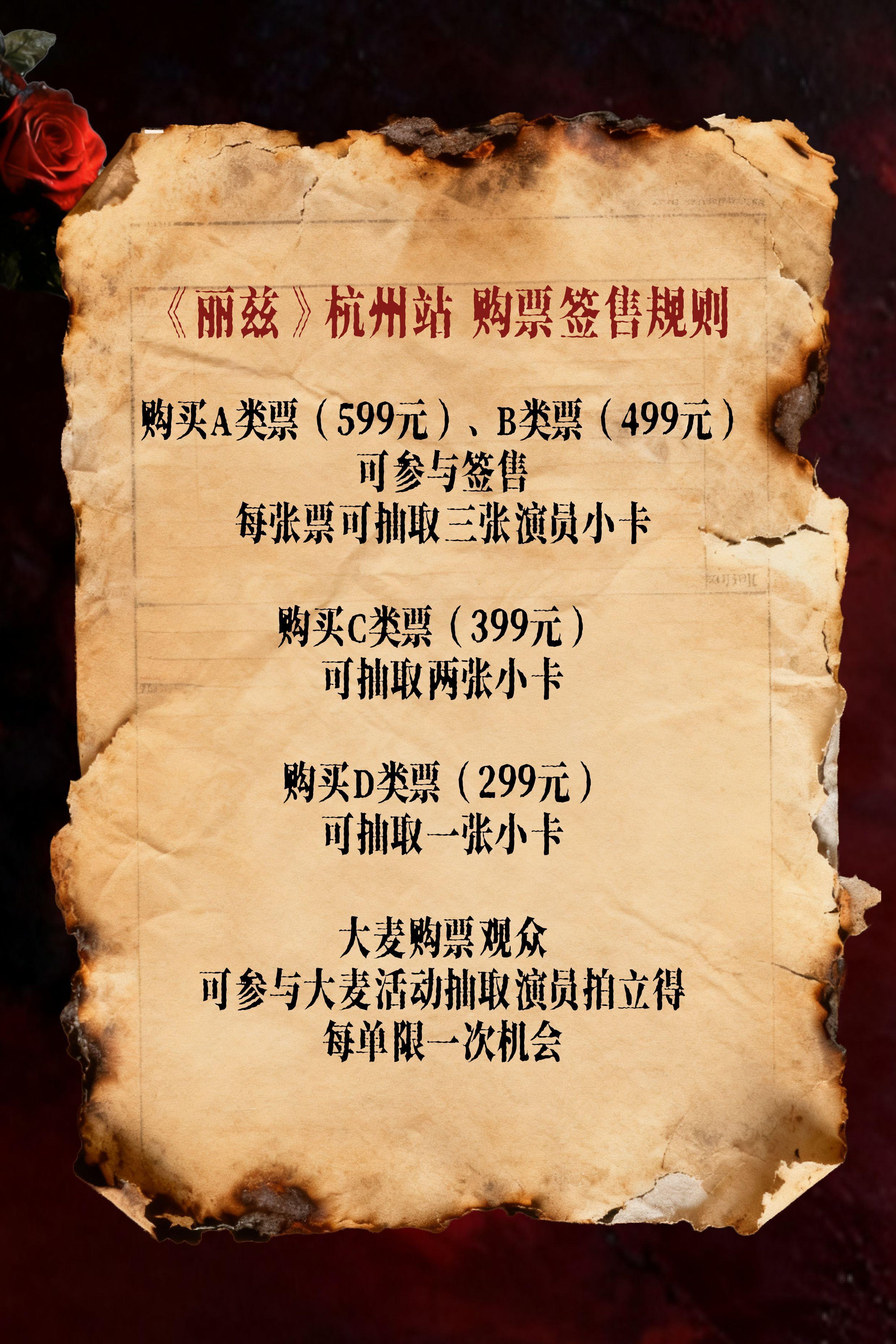 | 儿童入场提示 | 建议16周岁以上观众观看,1.2米以下儿童谢绝观演 | 禁止携带物品 | 食品、饮料、相机、充电宝、打火机等 |