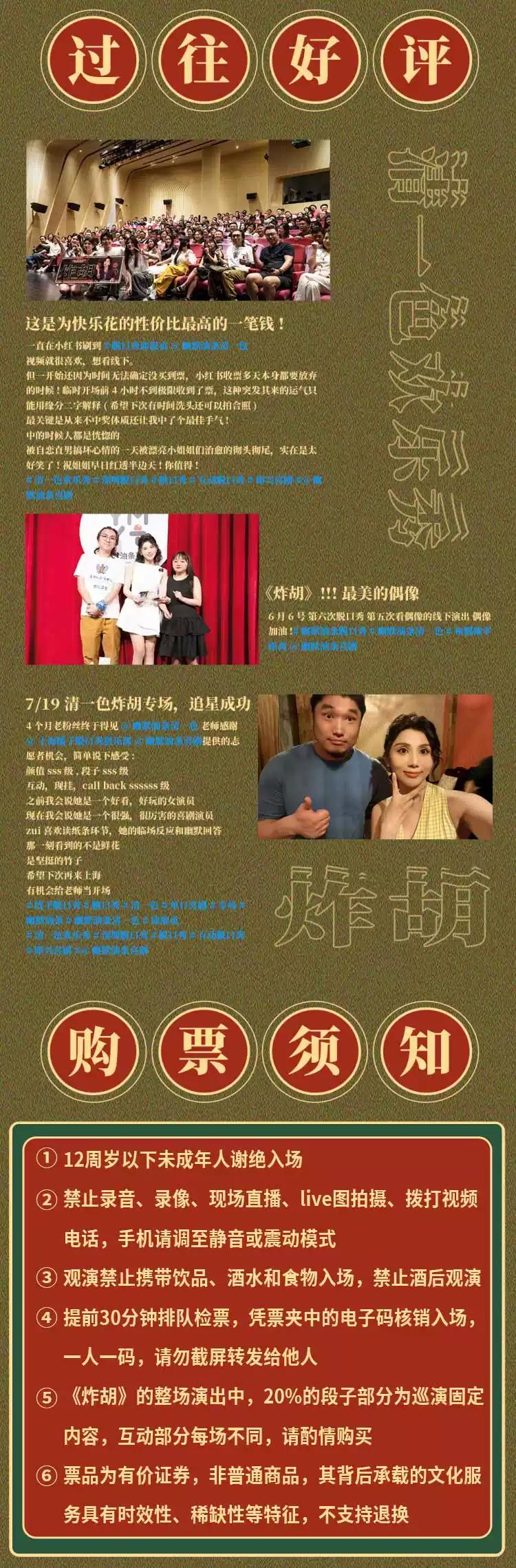 | 禁止携带物品 | 食品、饮料、相机、充电宝、打火机等 | 发票说明 | 如需开具发票,请在演出结束后一个月内联系客服并提供开票信息:票款发票由商家开具,平台服务费发票由票牛开具。 |