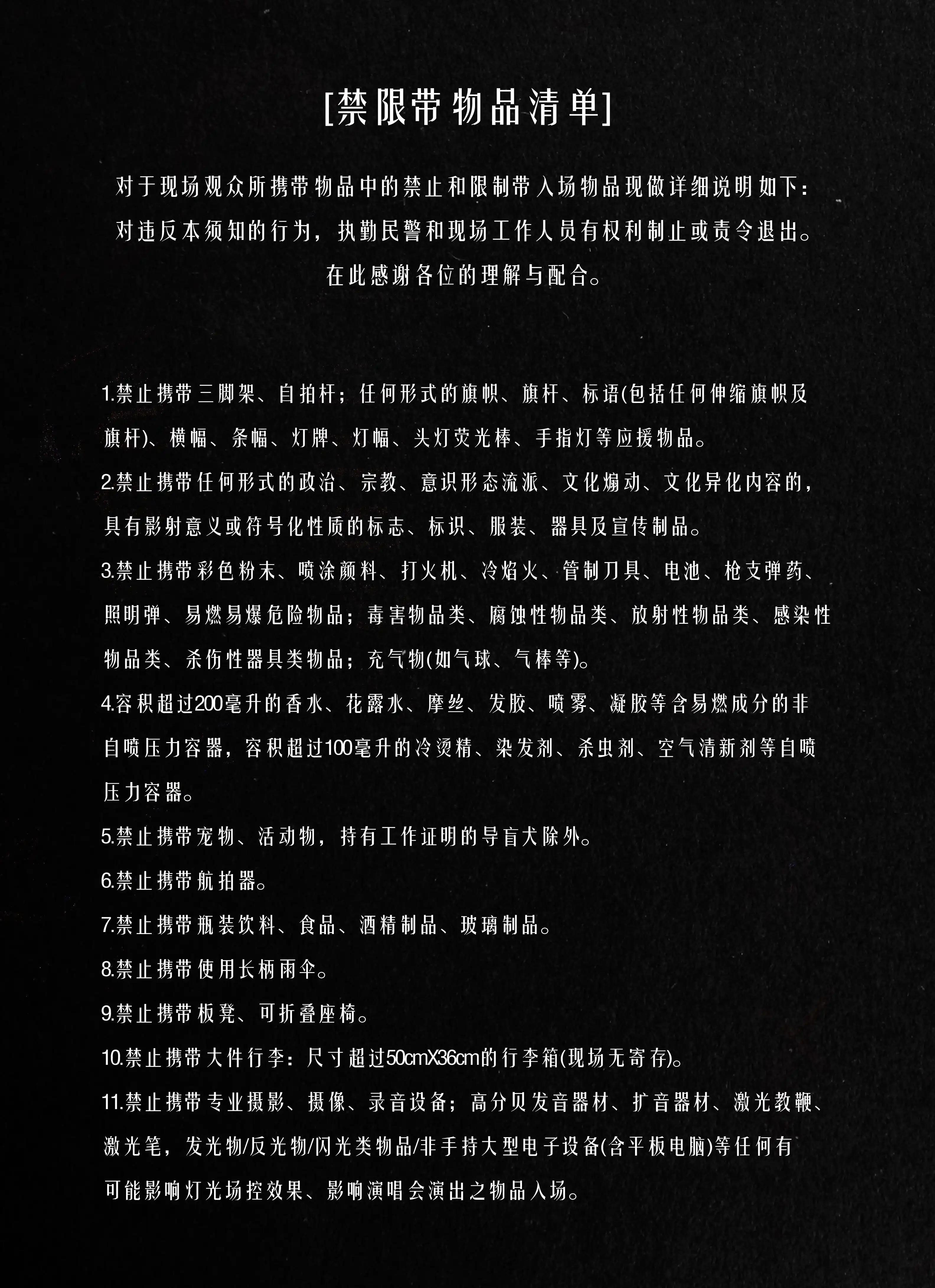| 重要提示 | 演出现场气氛热烈,请您务必根据自身身体状况酌情是否购票参与观演,特别是患有心脏类疾病、急性心脑血管疾病、心肌炎、高血压等相关疾病的人群,请您务必遵照医嘱,结合病史及个人身体状况进行观演,观演期间请自行承担身体健康相关责任。 | 温馨提示 | 购买前请您提前规划好行程,做好相应准备,以免影响您的正常观演,感谢您的理解和配合。 若演出受不可抗力影响延期或取消,票牛将对演出票订单按照项目官方通知方案进行处理,其他因观演发生的费用需由您自行承担。 |