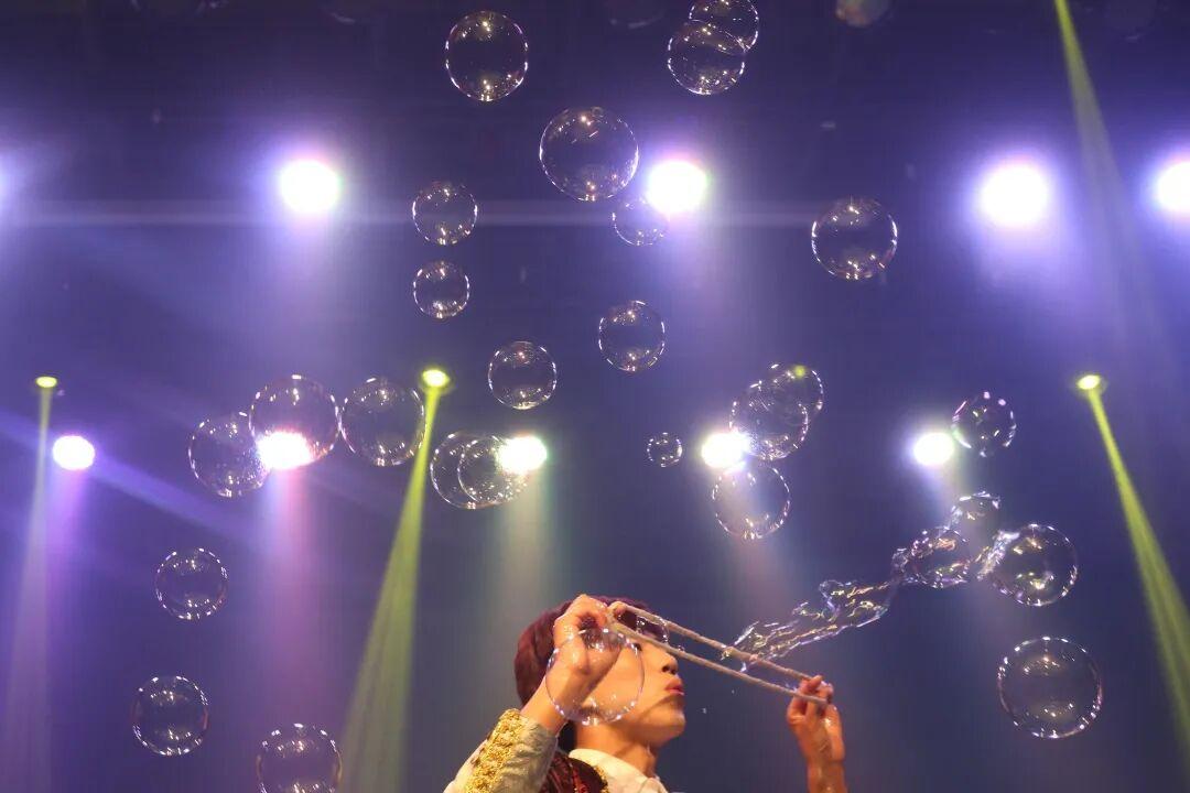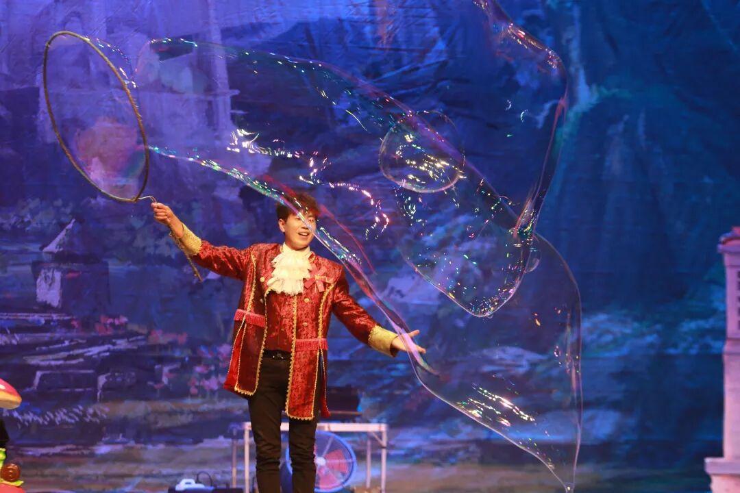 烟雾泡泡如烟似雾的烟雾泡泡,有着包裹着白色烟雾的白色泡泡,圆圆的烟圈泡泡,花样繁多的表演,精彩纷呈让小朋友全然入