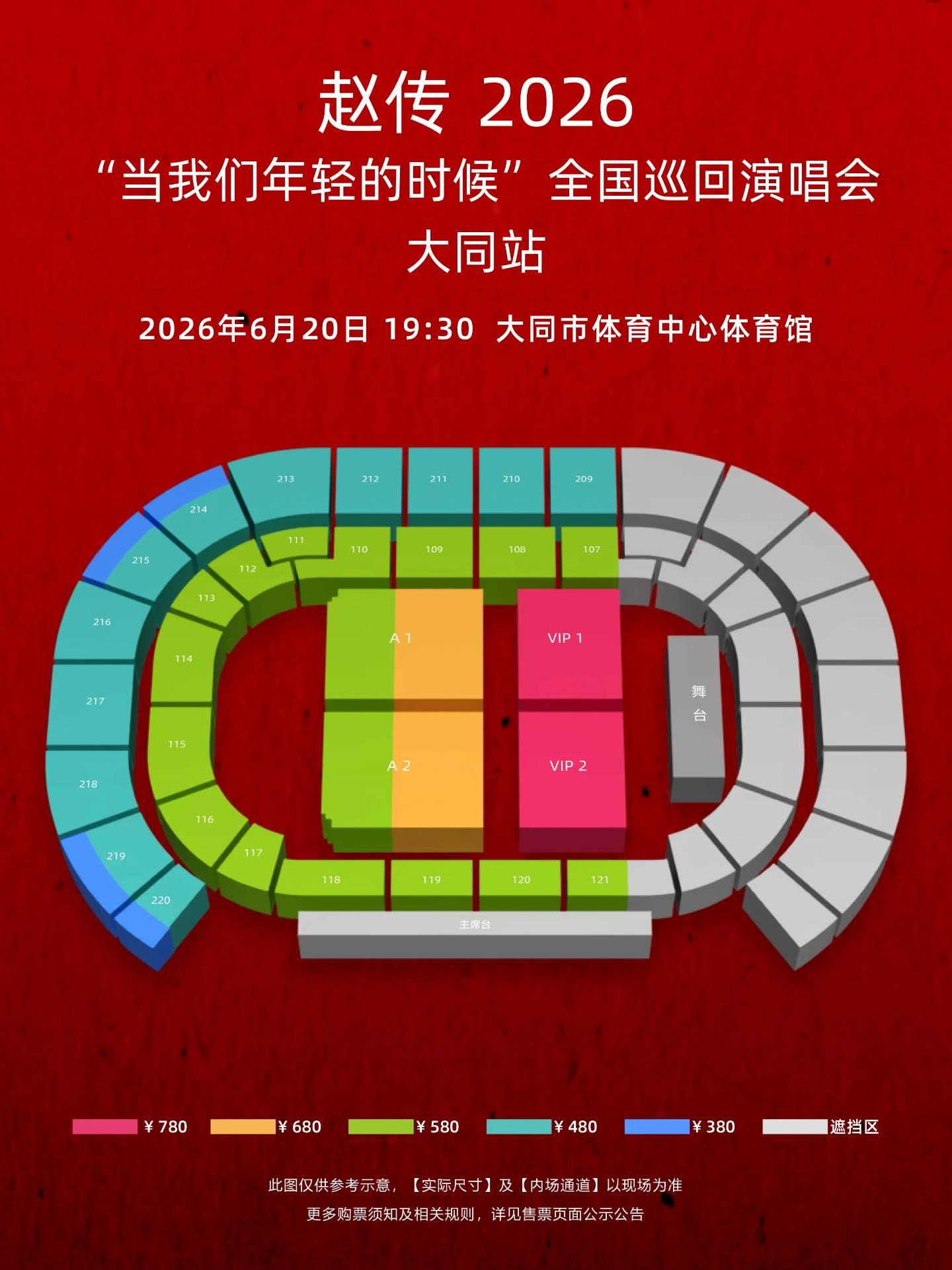 | 限购说明 | 每单限购6张 | 重复购票说明 | 同一位“实名观演人”请勿在多个售票平台重复购票,一位“实名观演人”的身份信息对应同场次的一张门票。 若同一位“实名观演人”被发现存在多个购票平台购买同场次行为,由该行为产生的无效重复订单、退票手续费、过期不可退票、无法入场等所有损失,均由购票人自行承担。 |