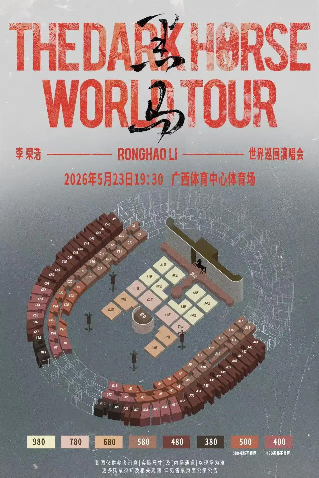 李荣浩第五轮个人巡演 -「黑马」世界巡回演唱会将于2026年5月23日登陆广西体育中心体育场