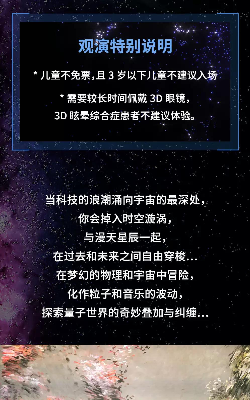 •购票时请确认好所购时间及场次,现场按对应场次参观体验。因演出特殊性,门票售出后,不可更换、延期和退款,逾期作废,除非法律另有规定。