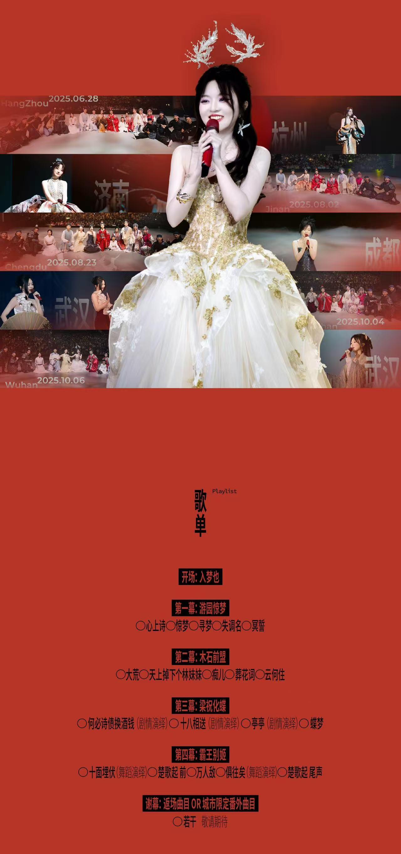 | 限购说明 | 每单限购6张 | 重复购票说明 | 同一位“实名观演人”请勿在多个售票平台重复购票,一位“实名观演人”的身份信息对应同场次的一张门票。 若同一位“实名观演人”被发现存在多个购票平台购买同场次行为,由该行为产生的无效重复订单、退票手续费、过期不可退票、无法入场等所有损失,均由购票人自行承担。 |