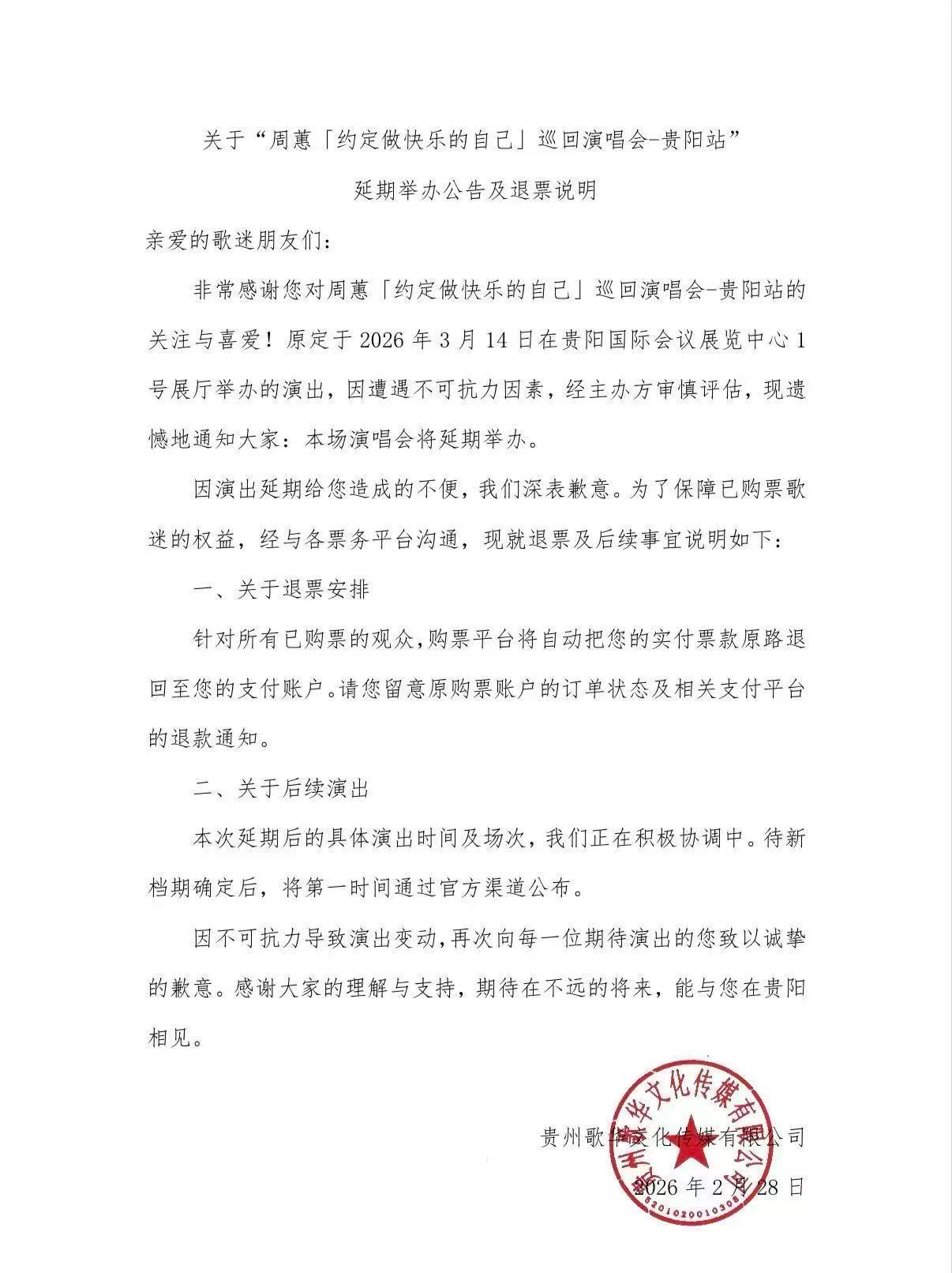 | 温馨提示 | 购买前请您提前规划好行程,做好相应准备,以免影响您的正常观演,感谢您的理解和配合。 若演出受不可抗力影响延期或取消,票牛将对演出票订单按照项目官方通知方案进行处理,其他因观演发生的费用需由您自行承担。 | 实体票 | 本项目支持凭实体票入场,支持以下取票方式: - 快递配送:运费10元(V4及以上会员包邮),顺丰发货。 - 现场取票:票牛工作人员将在演出开场前1小时至现场派票。工作人员联系方式、具体取票地点将在演出当天以短信通知发送至预留的手机号。 |