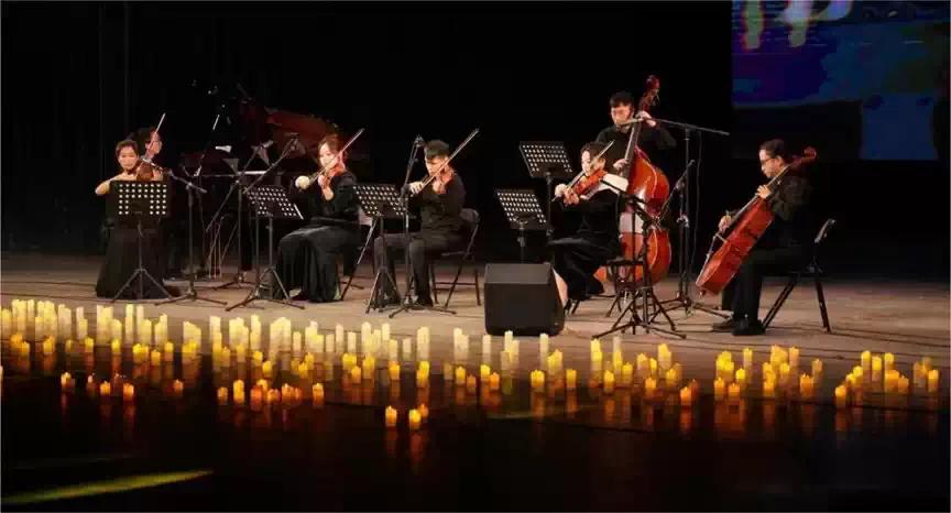 本场音乐会中所选的曲目经过精心挑选,可以说首首都是大家耳熟能详,脍炙人口的经典电影音乐,本场音乐会由多位专业的青年艺术家呈现一场不一样的音乐会。曲风多变,音乐配置及其丰富,演奏将用钢琴、小提琴、中提琴、大提琴等去重现、改编多首经典影视金曲,将光影动画与重奏音乐相结合,它是一场沉浸式体验,动画随着音乐的响起随之而改变,即是听觉盛宴也是视觉享受。音乐是浪漫的,烛光是对音乐的衬托,也是也是对音乐意境的提升。