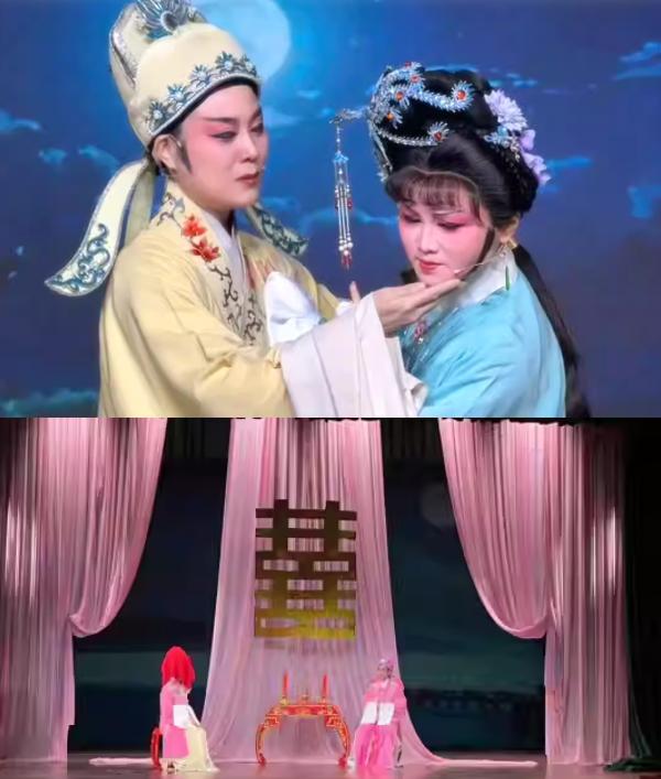 剧中的名场面早已刻进戏迷DNA:洞房夜“洞房悄悄静幽幽”的温柔试探,牵手托腮的撩拨分寸感十足;露真一折中“好气,好气也”的短促颤音,搭配水袖掩面的微颤,把心如刀绞的委屈演绎得淋漓尽致;谢云霞的冷若冰霜与梁玉书的执着温柔形成极致拉扯,剧情经润色后更显圆润,人物转变自然动人。杨晓星饰演的谢云霞声腔大气,与陆锦娟的对手戏张力拉满,成就了这出“听是盛宴,看是绝景”的经典。