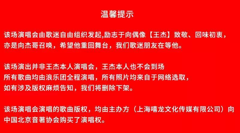 本场演唱会亦是我们杰迷齐聚一起回忆王杰老师作品金曲演唱会,亦是向王杰老师召唤《杰哥·你快回来吧》我们杰迷想你 我们永远等你回归舞台。