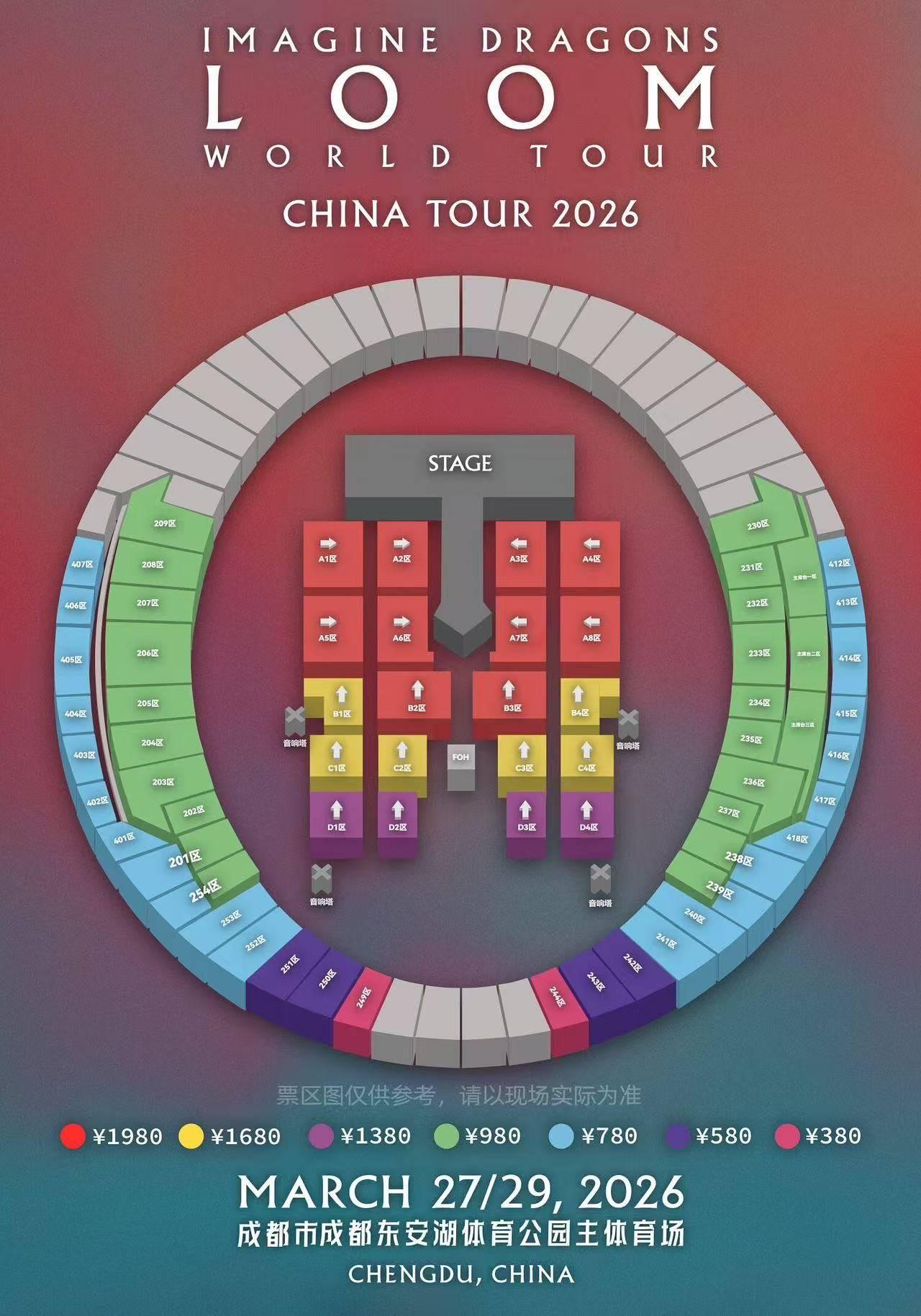 2026 IMAGINE DRAGONS LOOM WORLD TOUR梦龙乐队世界巡回演唱会国内三城巡演全程由主办方有源文化YYC重磅出品。