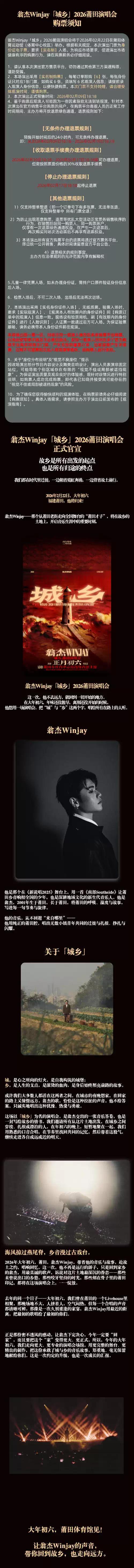 [莆田][超低价拼团]翁杰Winjay 2026「城乡」莆田演唱会