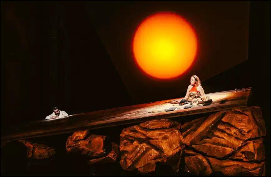 在《美好的日子》中,贝克特用最克制的语言,探讨了人类在最极端处境下如何保持尊严、如何寻找意义、如何继续生活。女主角温妮在逐渐被泥土吞噬的过程中依然保持着对生活的热情与期待,她与几乎沉默的伴侣威利之间碎片化的对话,构成了荒诞派戏剧中最为动人的精神图景。