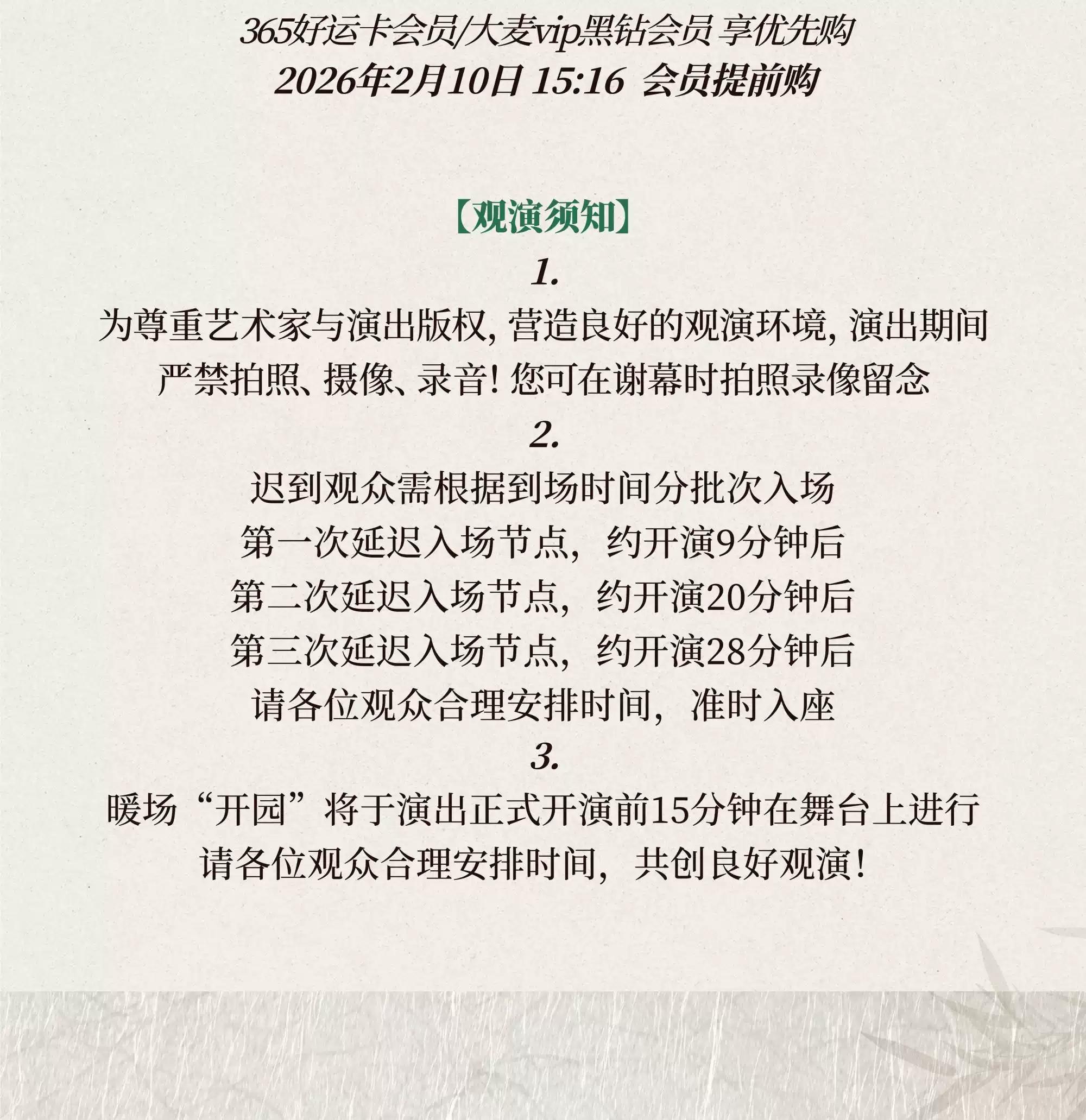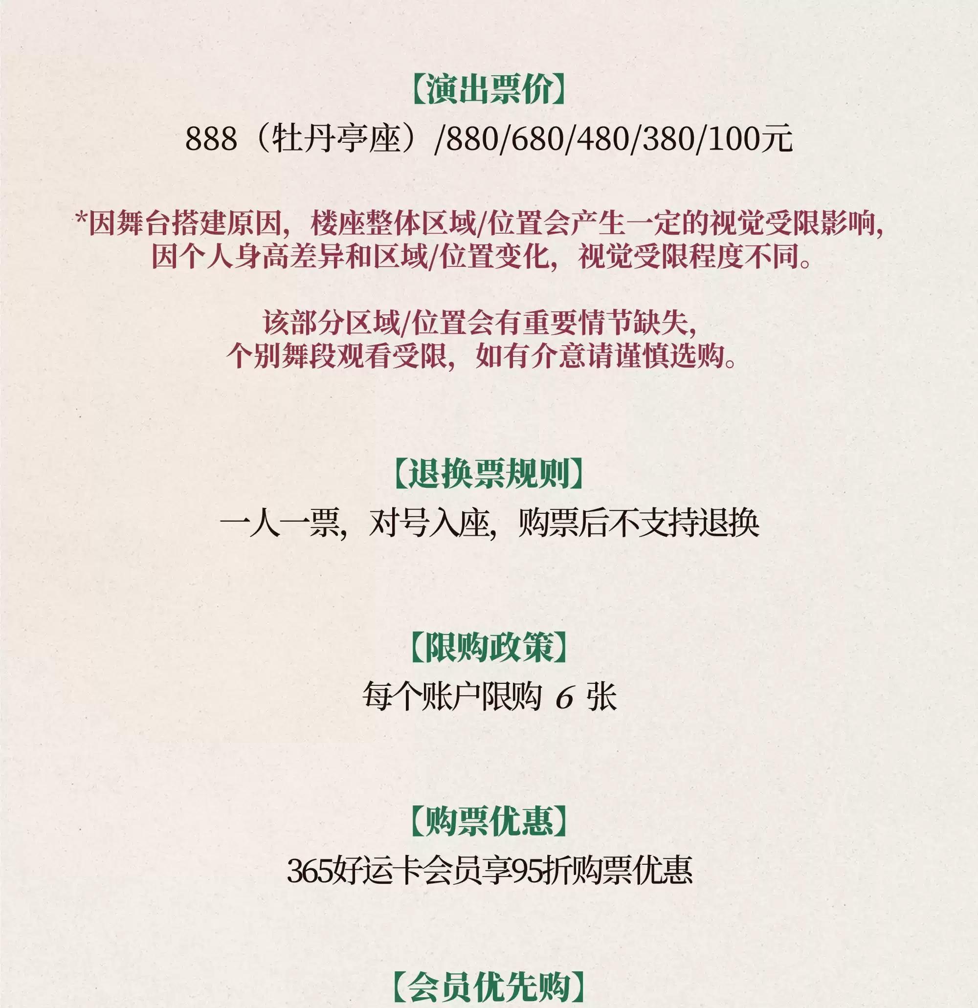 *由于本场演出内容编排设计,楼座座位存在较强的视线遮挡情况,观看部分演出片段可能受到影响,请您谨慎购买!