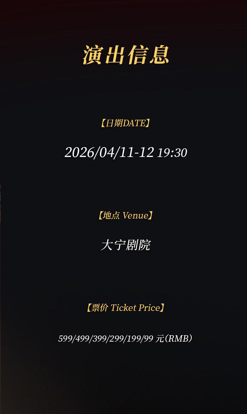 | 禁止携带物品 | 食品、饮料、相机、充电宝、打火机等 | 发票说明 | 如需开具发票,请在演出结束后一个月内联系客服并提供开票信息:票款发票由商家开具,平台服务费发票由票牛开具。 |