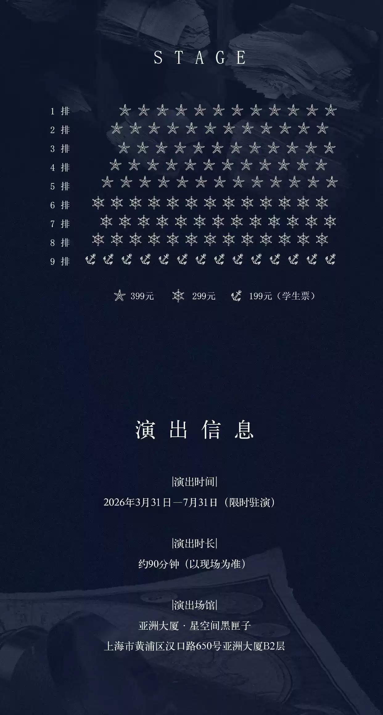 | 禁止携带物品 | 食品、饮料、相机、充电宝、打火机等 | 发票说明 | 如需开具发票,请在演出结束后一个月内联系客服并提供开票信息:票款发票由商家开具,平台服务费发票由票牛开具。 |