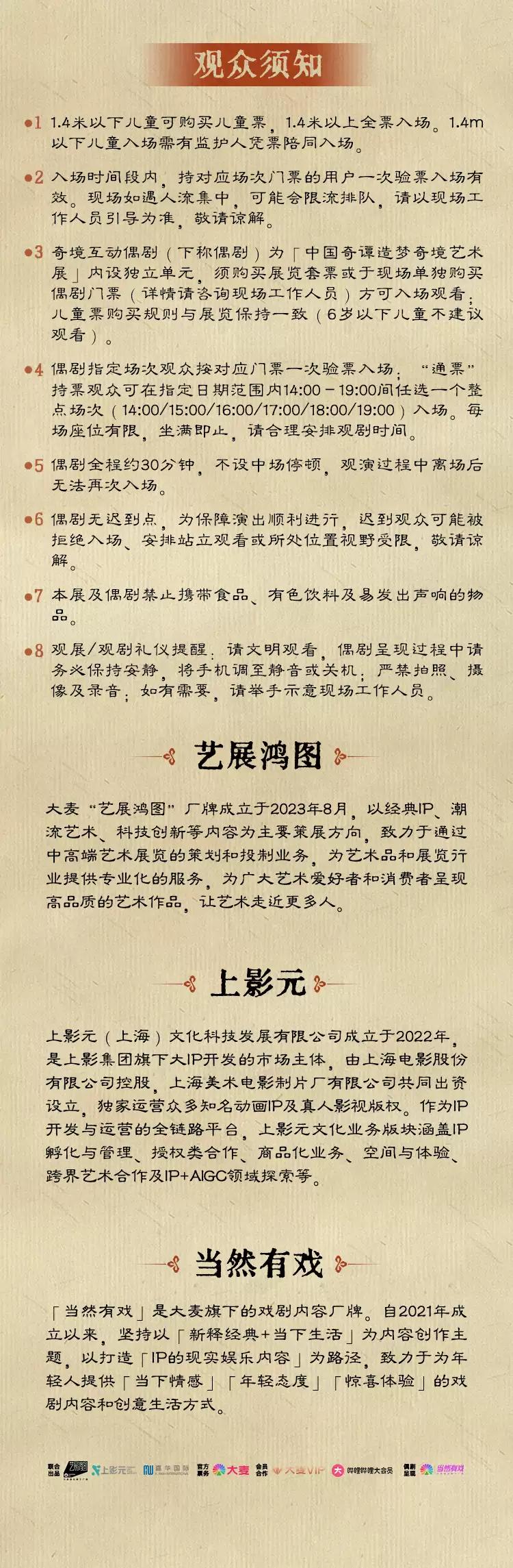 | 座位类型 | 现场不设座位,均为站席观演 | 儿童入场提示 | 1.2米以上凭票入场,1.2米以下谢绝入场 |