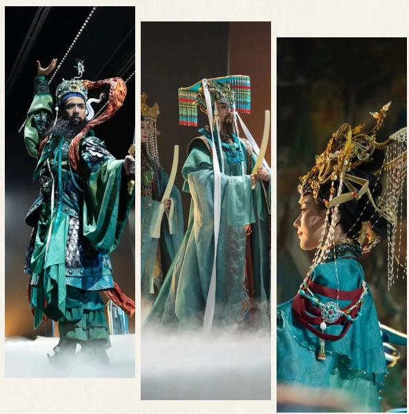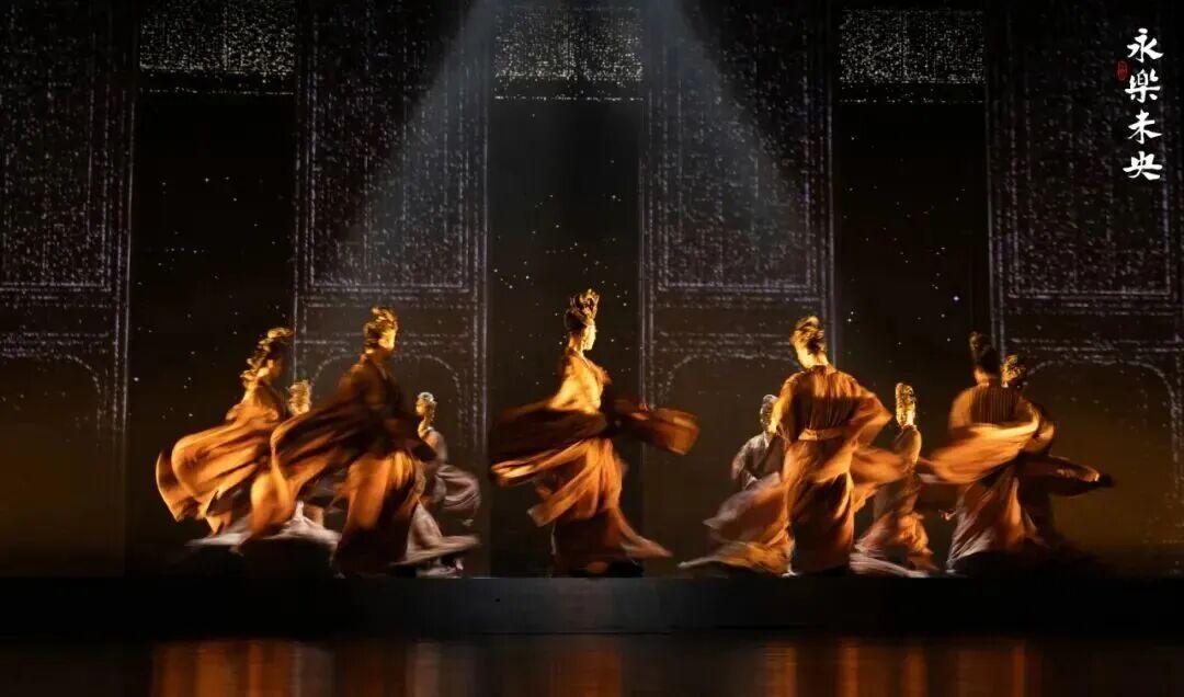舞剧《永乐未央》以首批全国重点文物保护单位山西芮城永乐宫为题材,以1950年代因修建三门峡水利工程,永乐宫迁建为叙事主线,在跨越七百余年的时空对话中,串联起“古建、壁画、琉璃、传承”四重美学维度的四个段落。