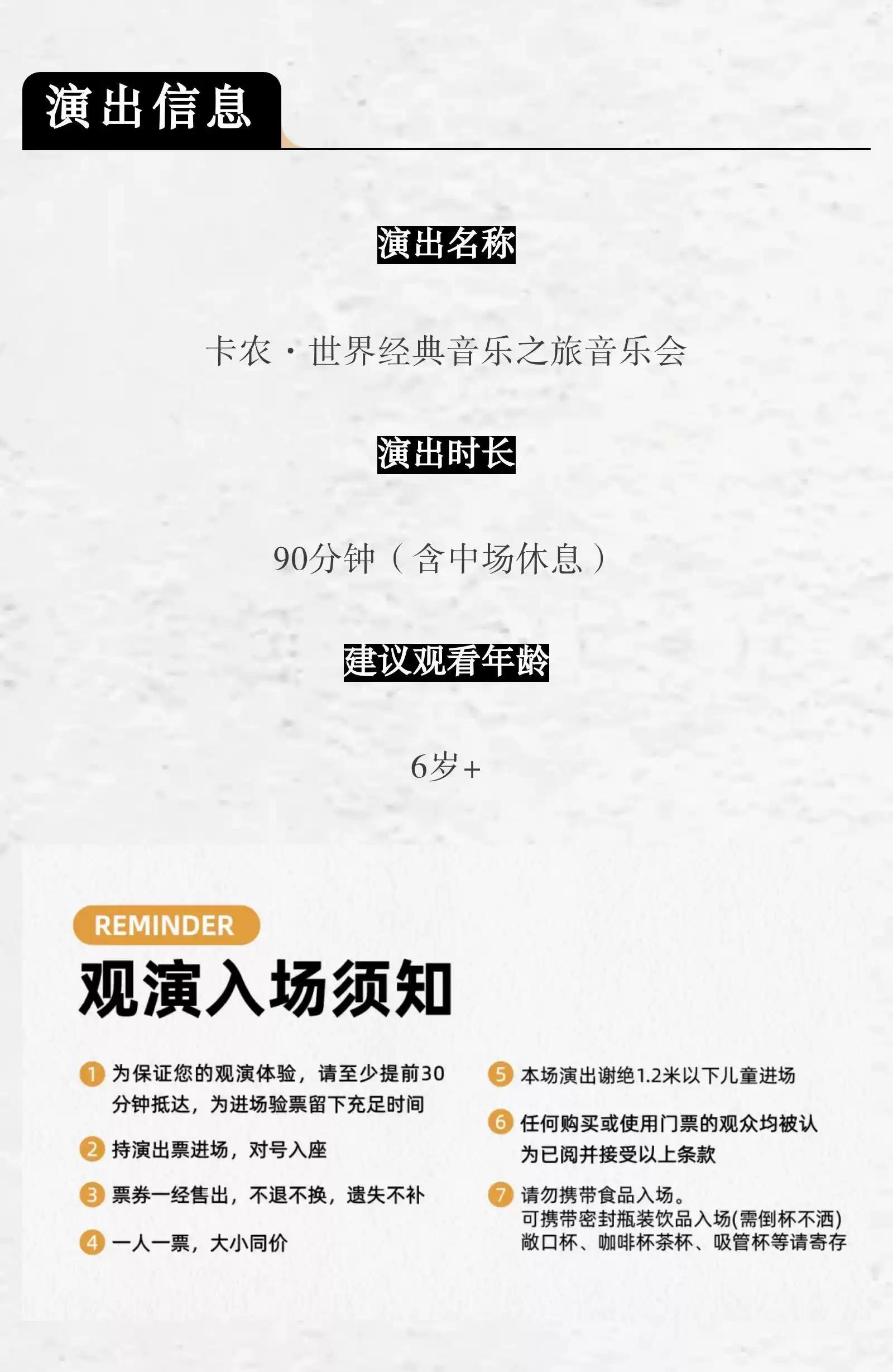 | 座位类型 | 请按门票对应座位,有序对号入座 | 儿童入场提示 | 1.2米以上凭票入场,1.2米以下谢绝入场 |