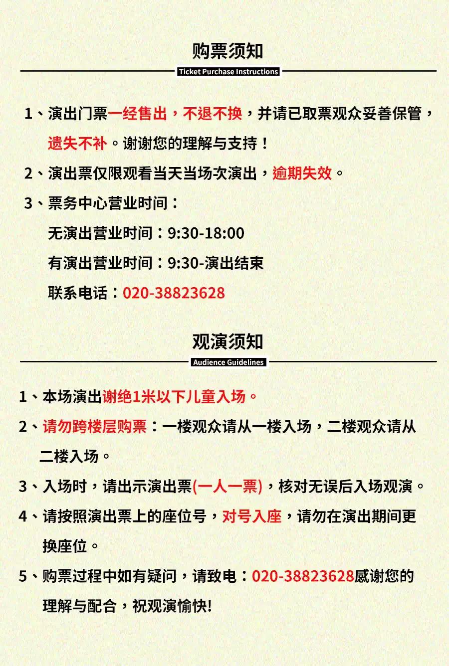 | 座位类型 | 请按门票对应座位,有序对号入座 | 儿童入场提示 | 1米以上凭成人票入场,1米以下谢绝入场 |