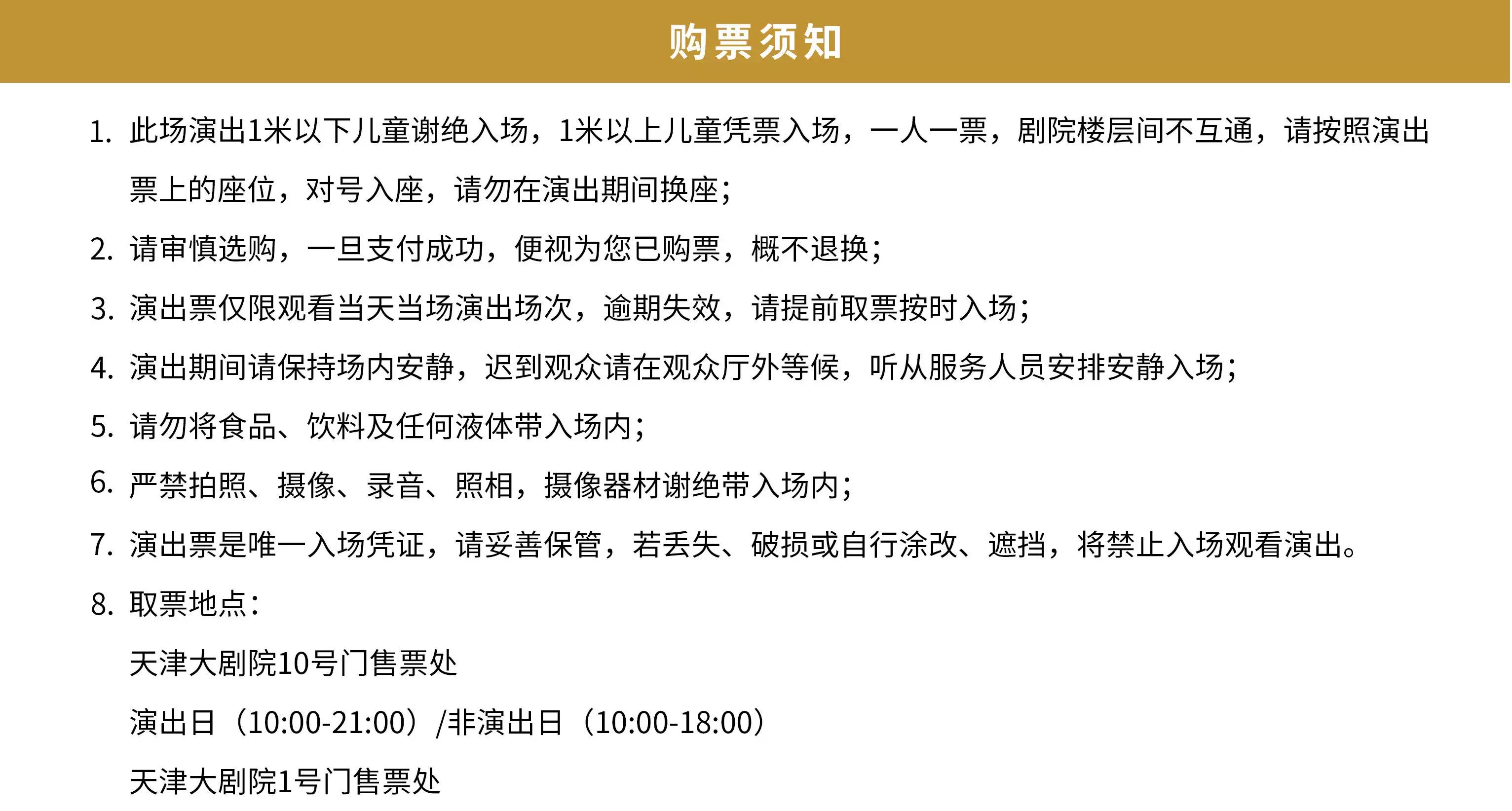 | 电子票 | 本项目支持凭电子票入场。 -请至少提前一天购买,开演前24小时内,票牛会发送取票短信,请按短信提示内容取票。 |