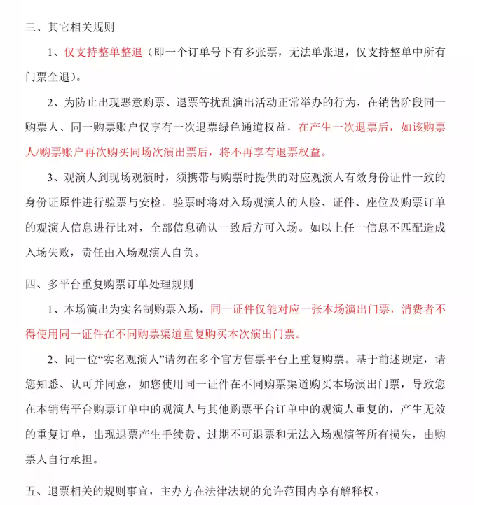 购票须知及退票规则