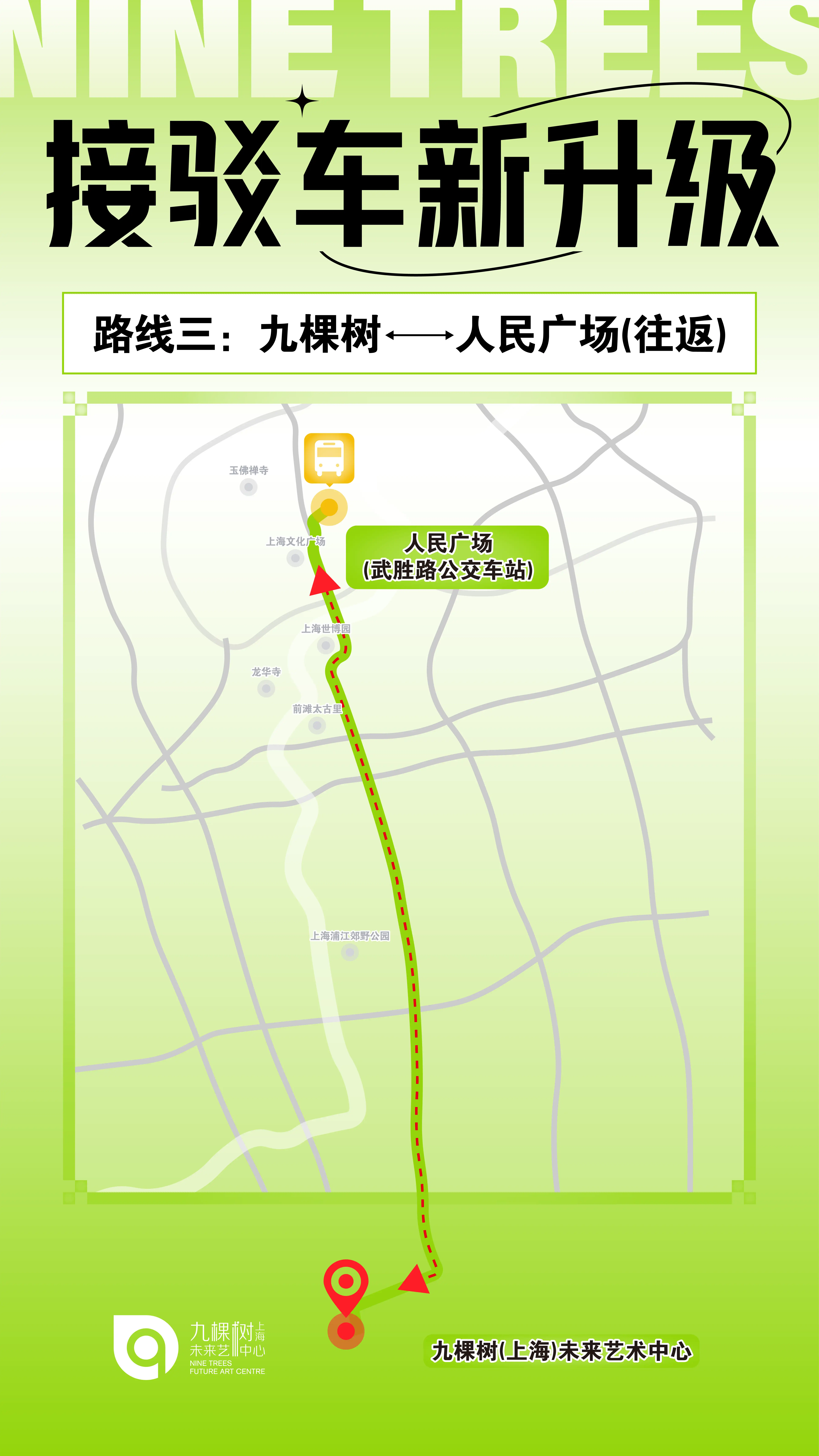 报名渠道:九棵树未来艺术中心官方小程序 → 首页「树懒专属接驳车」专题
