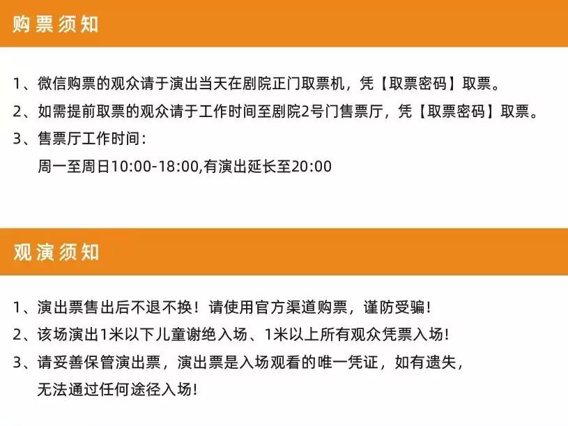 | 座位类型 | 请按门票对应座位,有序对号入座 | 儿童入场提示 | 本场演出一米以下儿童谢绝入场 |