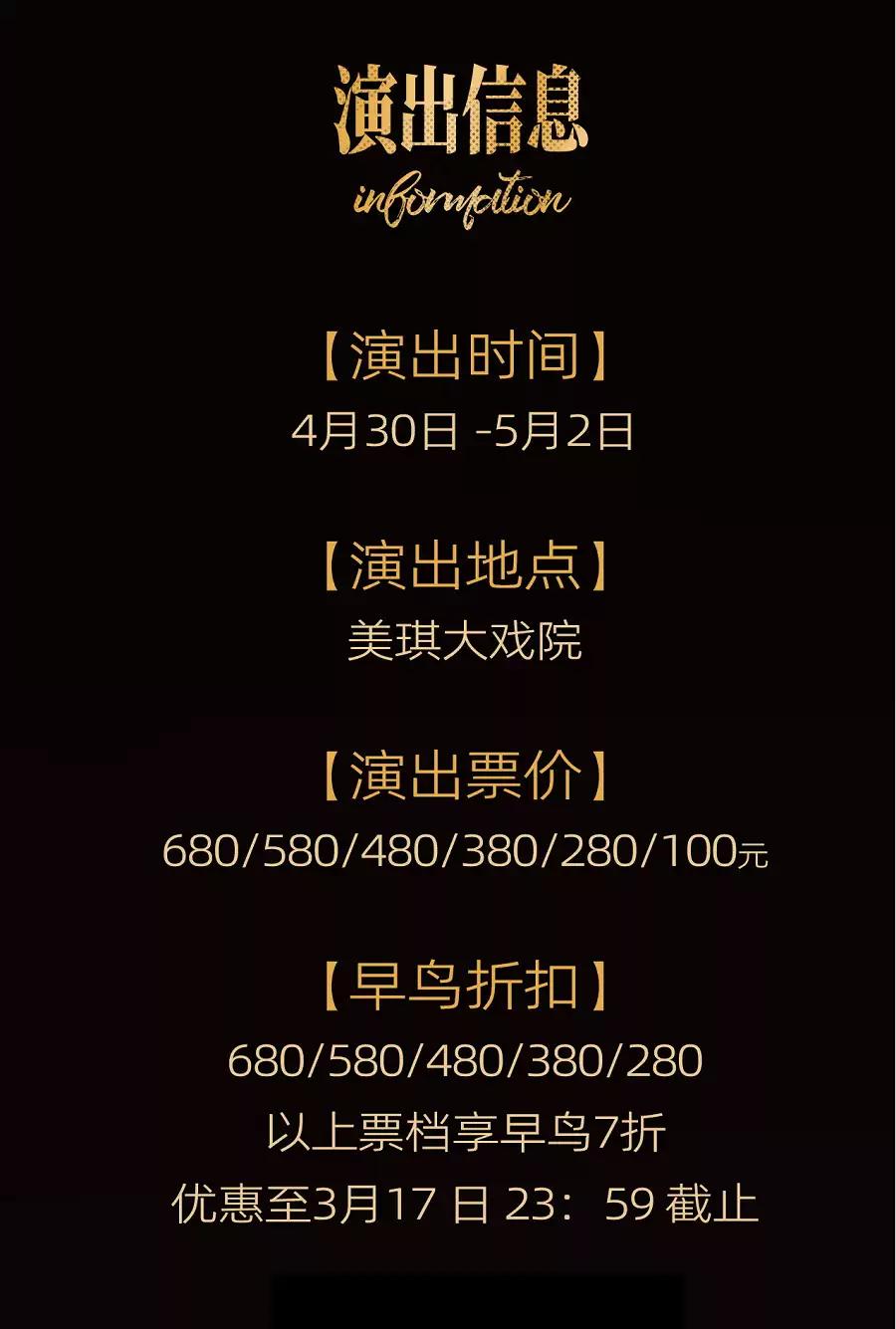 | 禁止携带物品 | 食品、饮料、相机、充电宝、打火机等 | 发票说明 | 如需开具发票,请在演出结束后一个月内联系客服并提供开票信息:票款发票由商家开具,平台服务费发票由票牛开具。 |