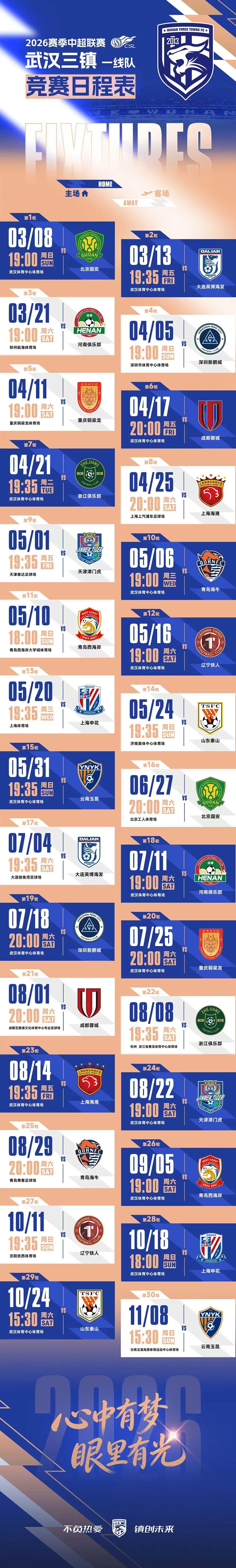 [武汉]2026怡宝中国足球超级联赛武汉三镇足球俱乐部主场赛事
