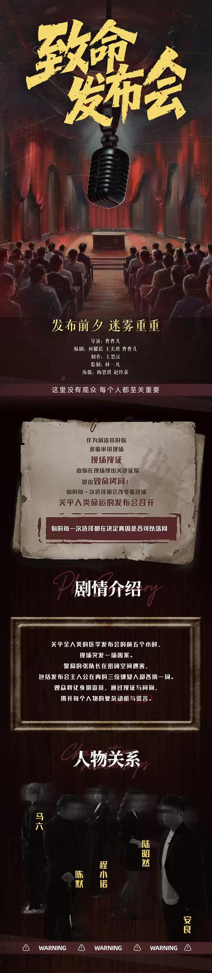 [北京]【年度爆款】沉浸式悬疑推理喜剧《致命发布会》|观众决定结局|全程深度互动|亲自上台搜证|可E可I