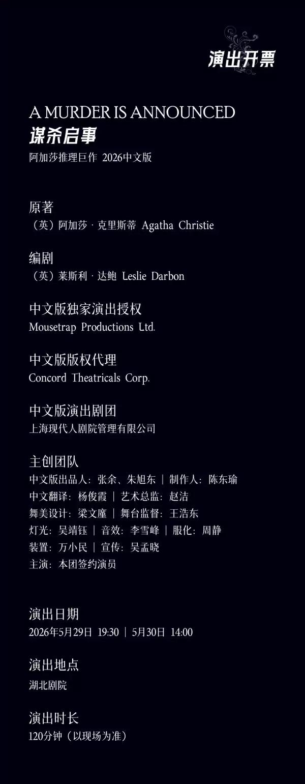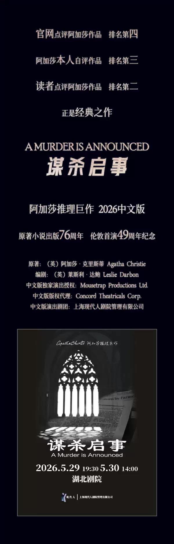 [武汉]阿加莎推理巨作《谋杀启事》
