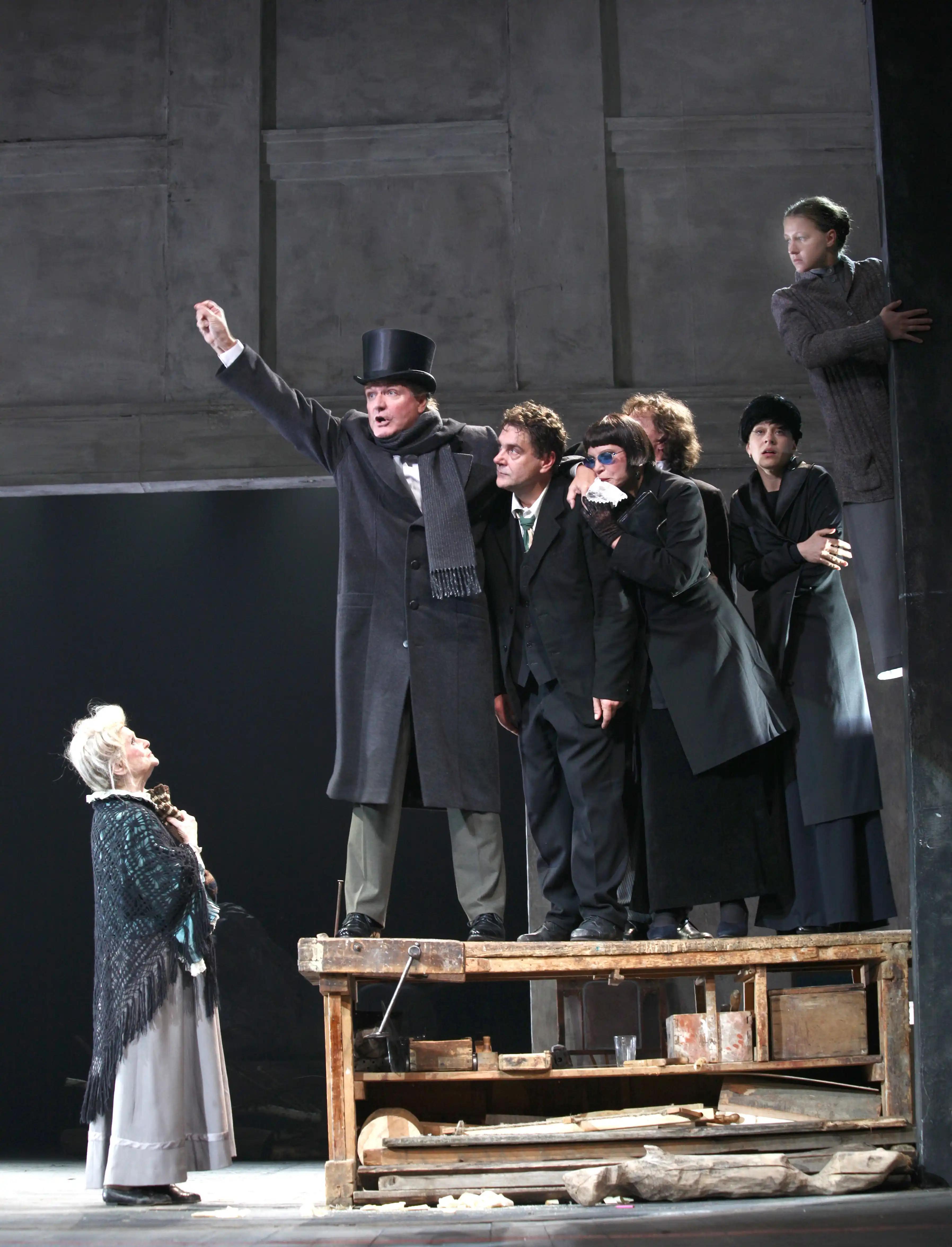 立陶宛导演里马斯·图米纳斯2007年就任俄罗斯瓦赫坦戈夫剧院艺术总监后执导的这版《万尼亚舅舅》获得当年俄罗斯戏剧最高奖项——金面具奖,也奠定了图米纳斯在俄罗斯戏剧界不可撼动的地位。返璞归真的家饰设计重构了原作中的写意空间,风格化的表演一步步剥离出生活的真相,整体呈现十分契合契诃夫作品中克制、内敛的情感倾向。正是这种图米纳斯式的“幻想现实主义”,让契诃夫超越时代的先锋思考在当下落地。