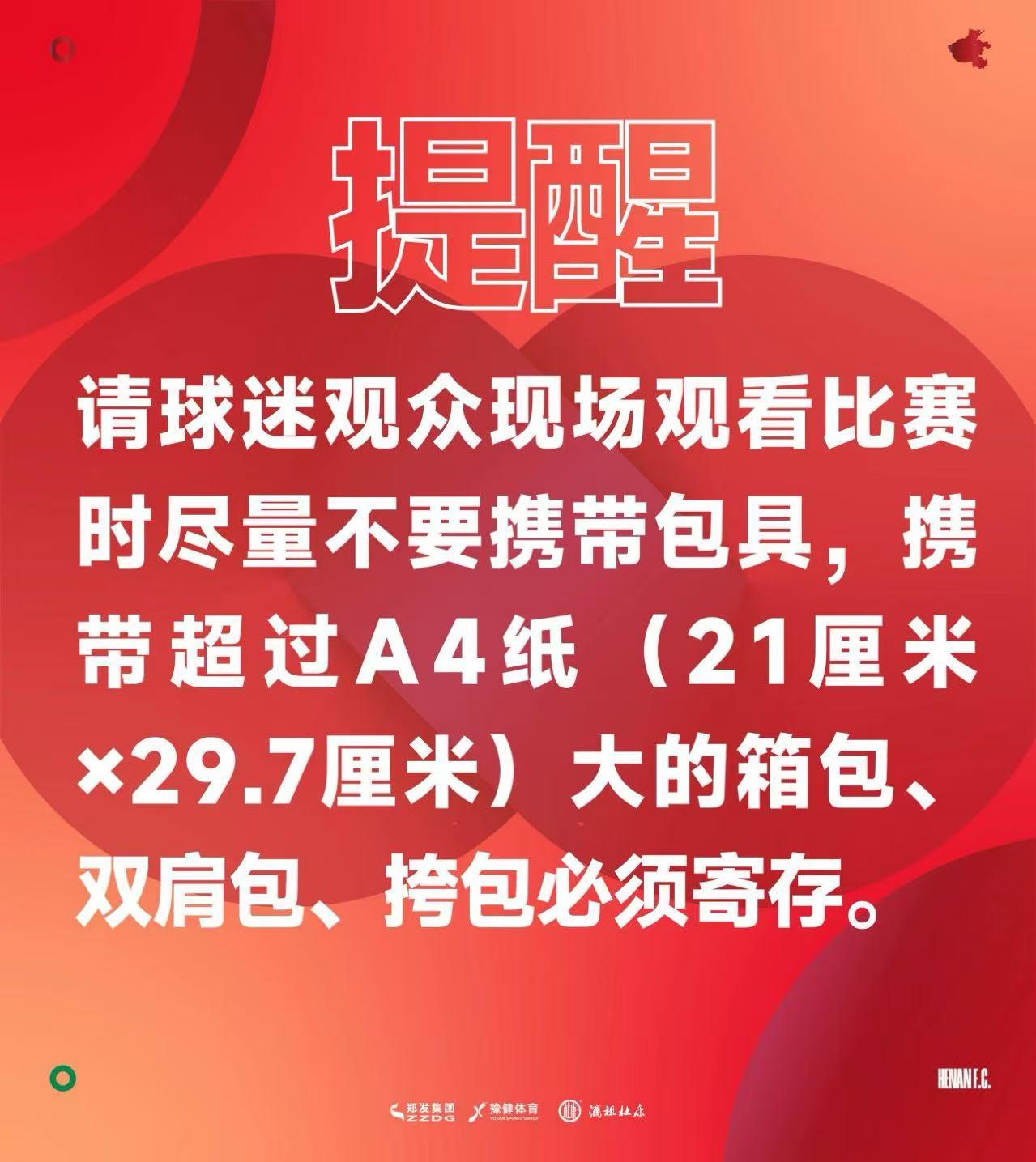 1、应河南赛区公安及反恐部门要求,球迷未携带身份证禁止入场,其他证件无效。
