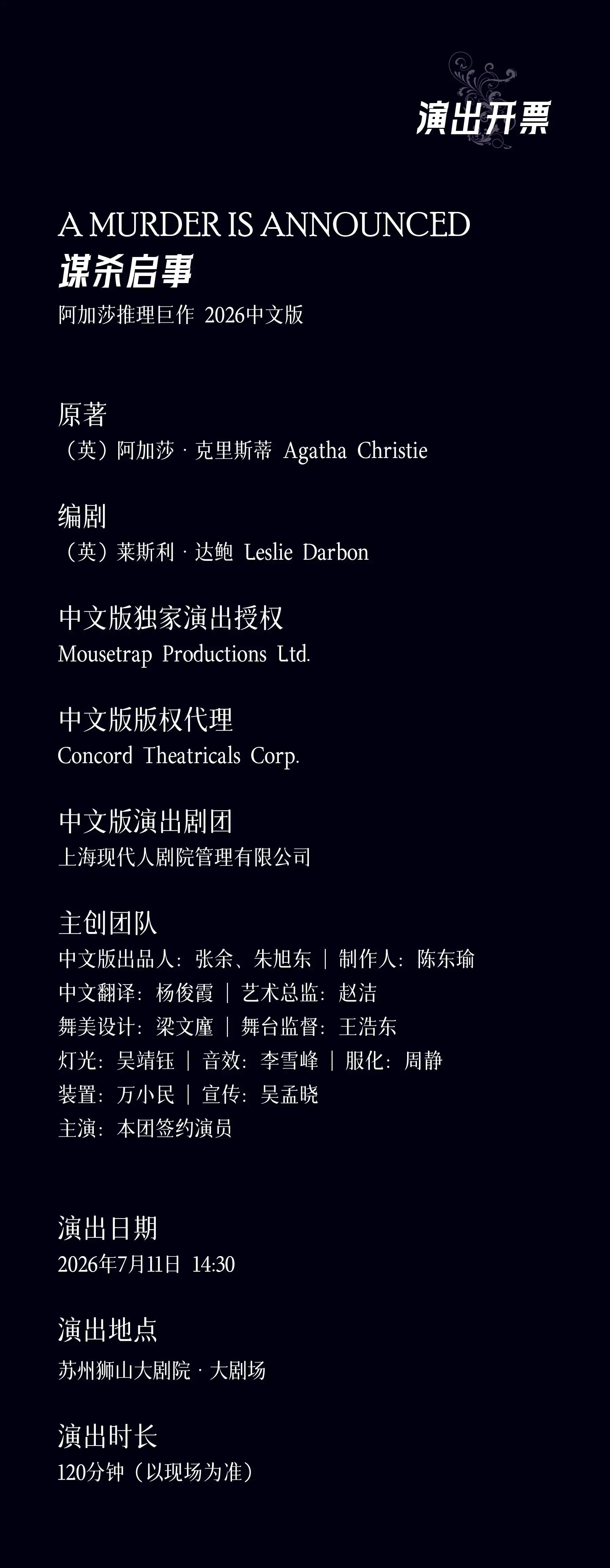 演出票售出后谢绝退换,请合理安排您的观演时间,感谢您的理解与配合!